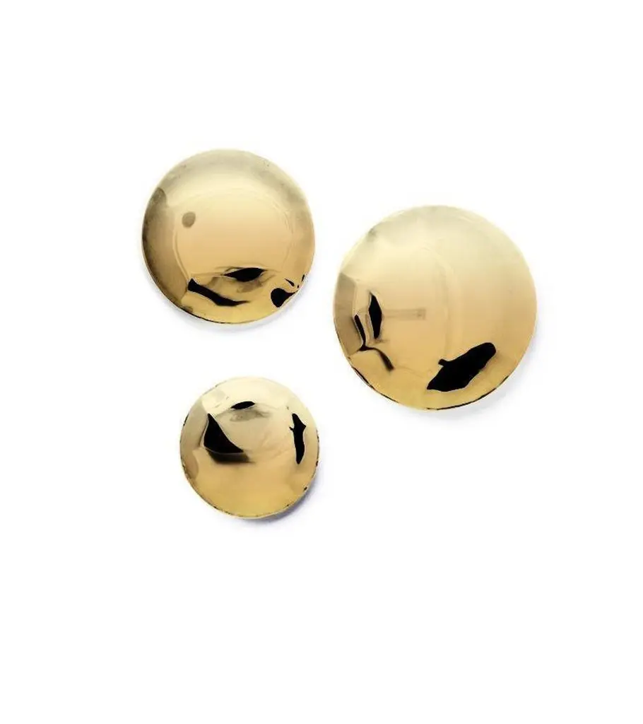 Set of 3 Flamed Gold Pin wall decor by ZietaDimensions: Diameter 10, 12, 14 cm Material: Stainless steel. Finish: Thermal colored.Available in Cosmic Blue. Available Powder-Coated in colors: Beige Grey, Graphite, Grey Blue, Stainless Steel, Moss Green, Umbra Grey, Water Blue, and White Matt. Also available in a set of 6 or individual pieces. Universal hanger and wall decor – PIN by Zieta Studio is available in many eye-catching colors and different sizes to form color patterns on the walls – can work as hangers or as color – decorations for walls. Welded and inflated in a way that allows small concavities on the surface that bring life to simple dots.About Zieta: Zietas main goal is to deliver uniqueness and customization in design and construction while keeping the production, transport, and warehousing innovatively efficient.This is how they imagine the future world: Light, durable structures of customized applications produced on demand out of one-of-a-kind parts, yet efficiently.They use a computer-controlled production process. Customized pattern, customized form, customized function, one-of-a-kind product, and outstanding precision are what they deliver.You will find all of this philosophy reflected in the products. The research, they discover new possibilities, they play with forms and they deliver a beautiful, innovative, surprising outcome to people who love the design and who care about design development.They believe their work is a valuable contribution to the world of design not only by the unique beauty of the forms but most of all by opening ultra-innovative opportunities of forming and new paths for the world of the future.