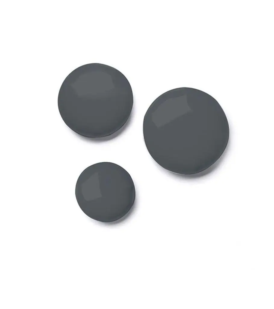 Set of 3 Graphite Pin wall decor by ZietaDimensions: Diameter 10, 12, 14 cmMaterial: Carbon steel.Finish: Powder-coated.Available in colors: Beige Grey, Graphite, Grey Blue, Stainless Steel, Moss Green, Umbra Grey, Water Blue and, White Matt. Also available in a set of 6 or individual pieces. Universal hanger and wall decor – PIN by Zieta Studio is available in many eye-catching colors and different sizes to form color patterns on the walls – can work as hangers or as color – decorations for walls. Welded and inflated in a way that allows small concavities on the surface that bring life to simple dots.About Zieta: Zietas main goal is to deliver uniqueness and customization in design and construction while keeping the production, transport, and warehousing innovatively efficient.This is how they imagine the future world: Light, durable structures of customized applications produced on demand out of one-of-a-kind parts, yet efficiently.They use a computer-controlled production process. Customized pattern, customized form, customized function, one-of-a-kind product, and outstanding precision are what they deliver.You will find all of this philosophy reflected in the products. The research, they discover new possibilities, they play with forms and they deliver a beautiful, innovative, surprising outcome to people who love the design and who care about design development.They believe their work is a valuable contribution to the world of design not only by the unique beauty of the forms but most of all by opening ultra-innovative opportunities of forming and new paths for the world of the future.