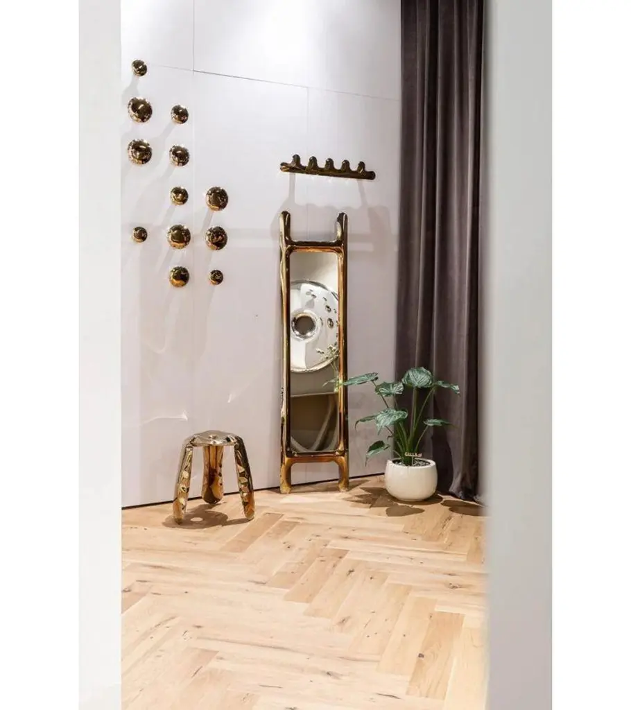 Set of 6 flamed gold pin wall decor by ZietaDimensions: Diameters 10, 12, 14, 16 cm.Material: Stainless steel. Finish: Thermal colored.Available in Cosmic Blue. Available powder-coated in colors: Beige Grey, Graphite, Grey Blue, Stainless Steel, Moss Green, Umbra Grey, Water Blue, and White Matt. Also available in a set of 3 or individual pieces. Universal hanger and wall decor – PIN by Zieta Studio is available in many eye-catching colors and different sizes to form color patterns on the walls – can work as hangers or as color – decorations for walls. Welded and inflated in a way that allows small concavities on the surface that bring life to simple dots.About Zieta: Zietas main goal is to deliver uniqueness and customization in design and construction while keeping the production, transport, and warehousing innovatively efficient.This is how they imagine the future world: Light, durable structures of customized applications produced on demand out of one-of-a-kind parts, yet efficiently.They use a computer-controlled production process. Customized pattern, customized form, customized function, one-of-a-kind product, and outstanding precision are what they deliver.You will find all of this philosophy reflected in the products. The research, they discover new possibilities, they play with forms and they deliver a beautiful, innovative, surprising outcome to people who love the design and who care about design development.They believe their work is a valuable contribution to the world of design not only by the unique beauty of the forms but most of all by opening ultra-innovative opportunities of forming and new paths for the world of the future.