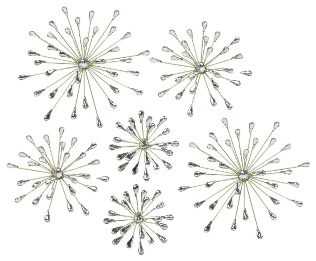 Set Of 6 Gold Finish Crystal Jeweled Rhinestone Starburst Metal Wall Hangings