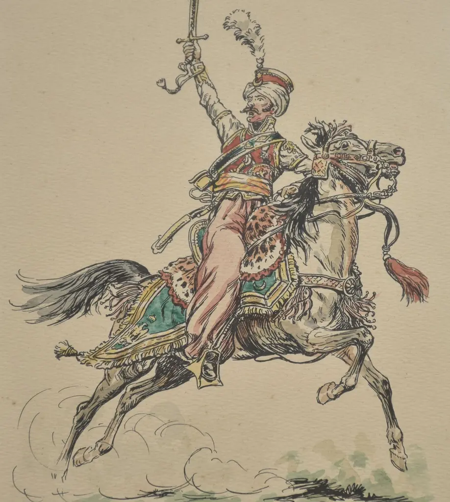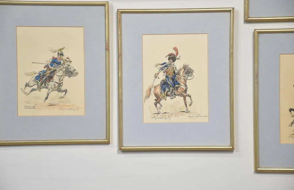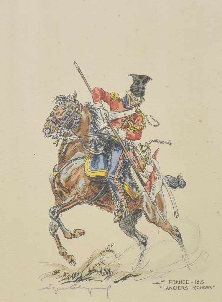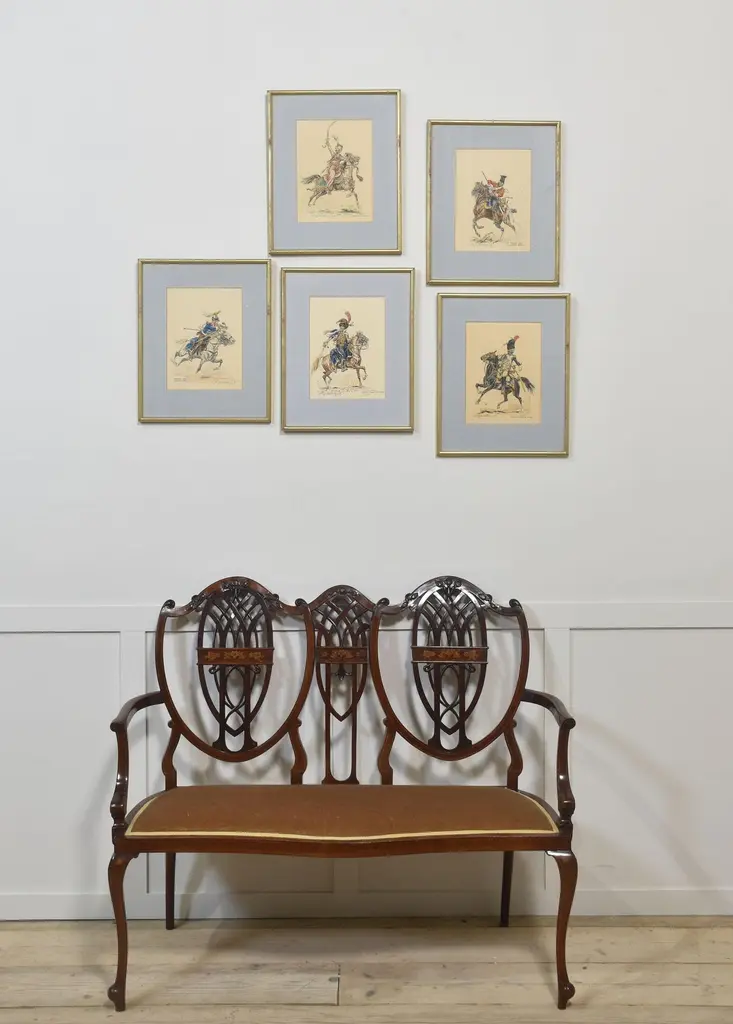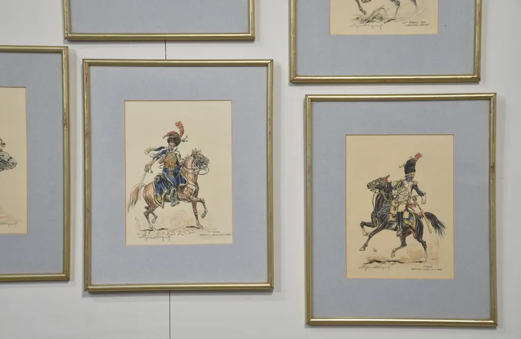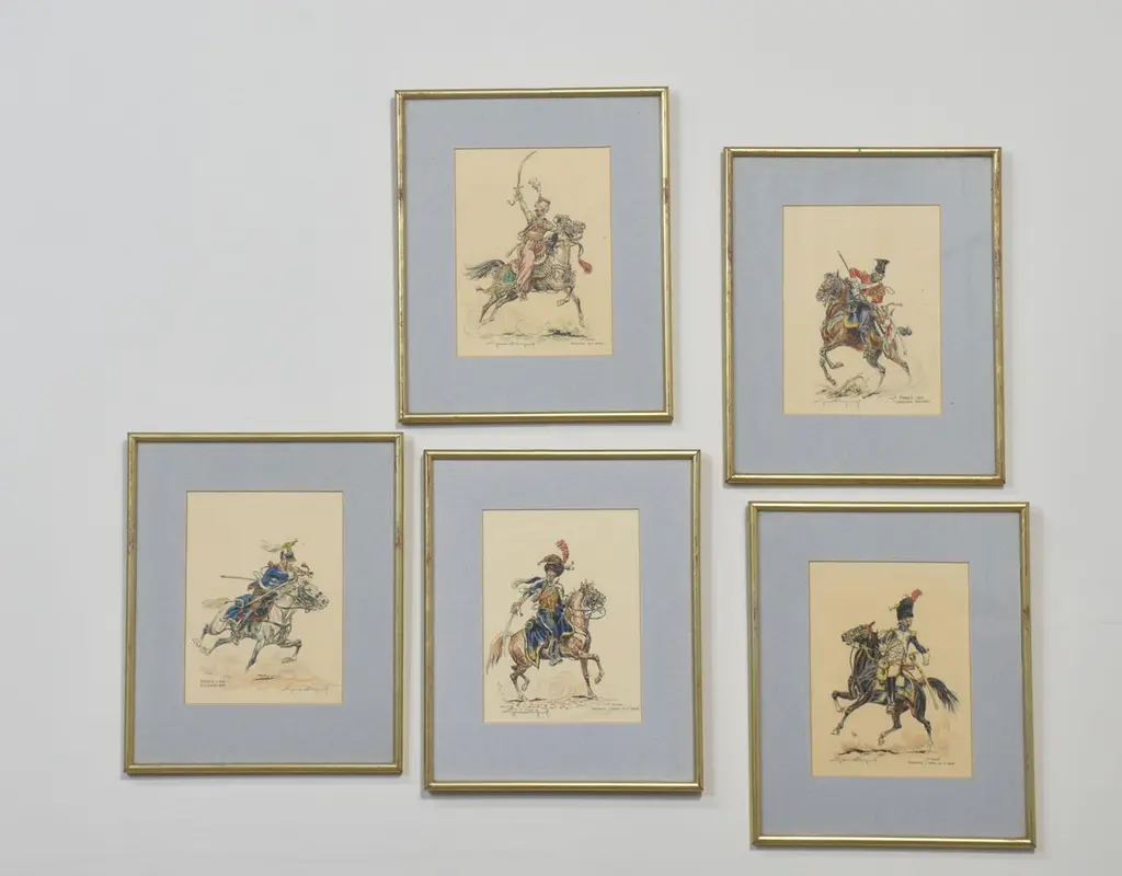 Set of five watercolour sketches by Eugene Leliepvre depicting mounted military figures encased in gilt and glazed frames.DimensionsHeight 18 InchesWidth 15 InchesDepth 1 Inches