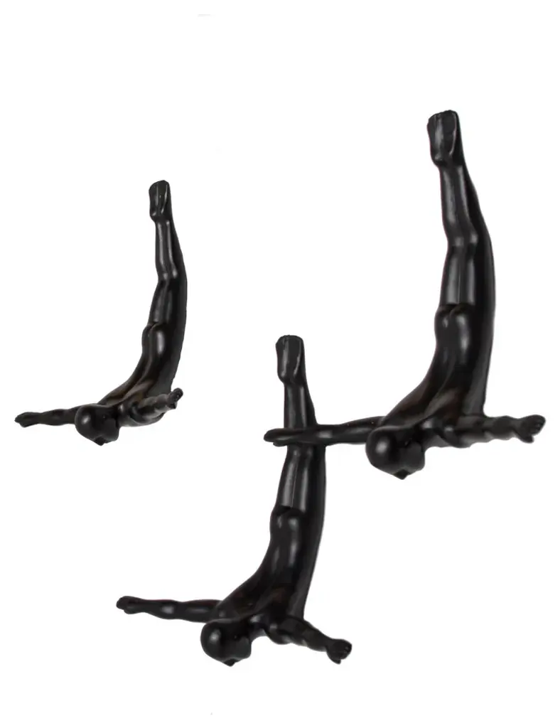 Enhance your room''s ambiance with this truly unique set of resin wall decor. Elevate your living space effortlessly by incorporating this contemporary trio into your decor scheme. Crafted from high-quality resin, this eye catching three dimensional decor gives the impression of divers coming out of the wall. 6.5-inch H x 6.5-inch W x 2.5-inch D
