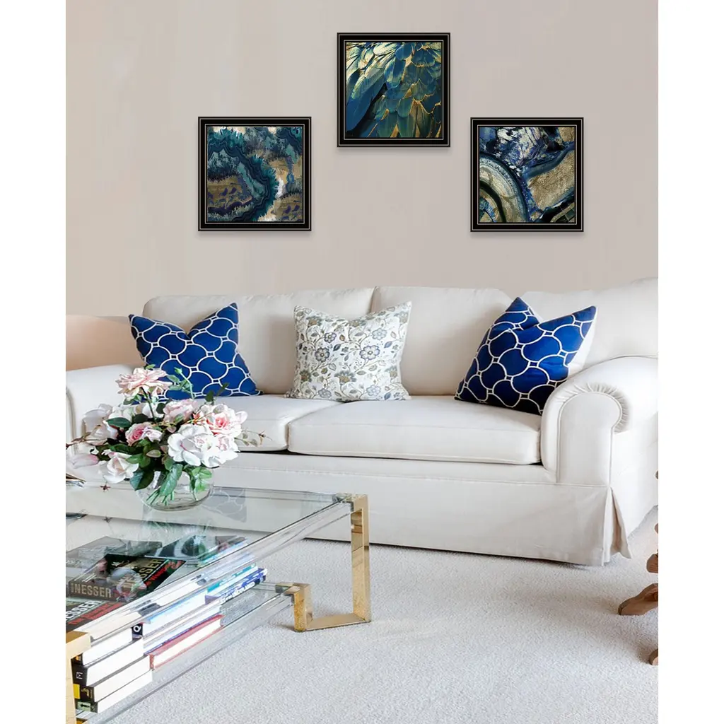 The set of three deep blue 3-piece vignette 1 black framed print wall art is the perfect decorative accessory for your home. This print is a visual artistic expression that allows you to decorate your space in style. Reproduced for you on wood, this hanging decorative accent will be a trendy and fashionable way to dress your walls in a rustic and modern farmhouse vibe. Adding this hanging wall art to your space to make your room feel more finished and attractive. Utilize this opportunity to create a focal point in the room with this fabulous wall decor option. 29" H x 29" W x 1" D