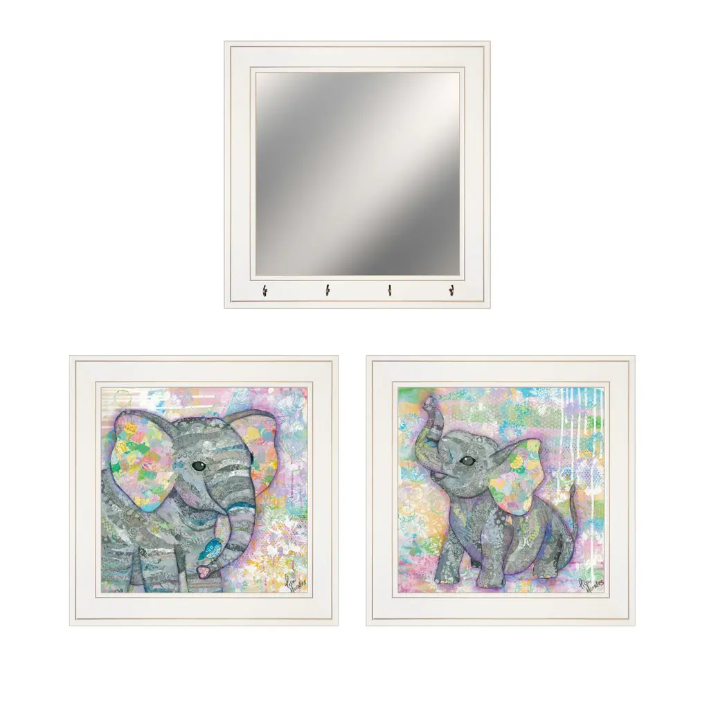 The set of three elephant i and ii 2 white framed print wall art is the perfect decorative accessory for your home. Update your walls with this wild jungle animal decor. This print is a visual artistic expression that allows you to decorate your space in style. Reproduced for you on paper, this hanging decorative accent will be a trendy and fashionable way to dress your walls. Hang on your wall to add some up to date fashion and decoration. Utilize this opportunity to create a focal point in the room with this fabulous wall decor option. 15" H x 15" W x 1" D