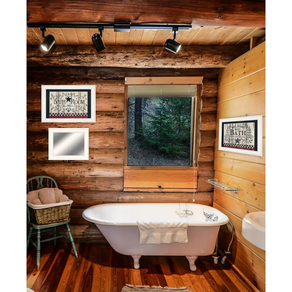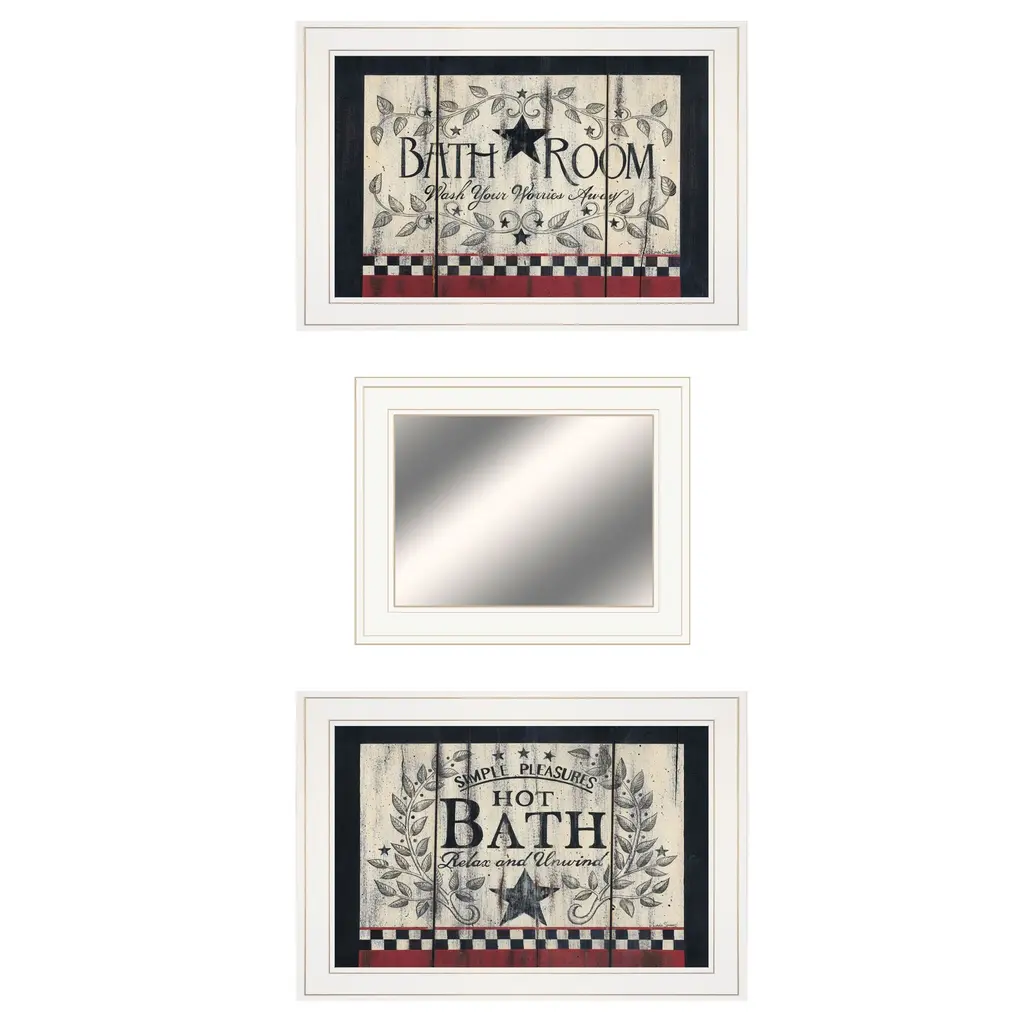 Unique and decorative, this set of three hot bath 3-piece vignette 11 white framed print wall art will leave a lasting impression. This print is a visual artistic expression that allows you to decorate your space in style. Reproduced for you on paper, this hanging decorative accent will be a trendy and fashionable way to dress your walls. Adding this hanging wall art to your space to make your room feel more finished and attractive. Utilize this opportunity to create a focal point in the room with this fabulous wall decor option. 15" H x 19" W x 1" D