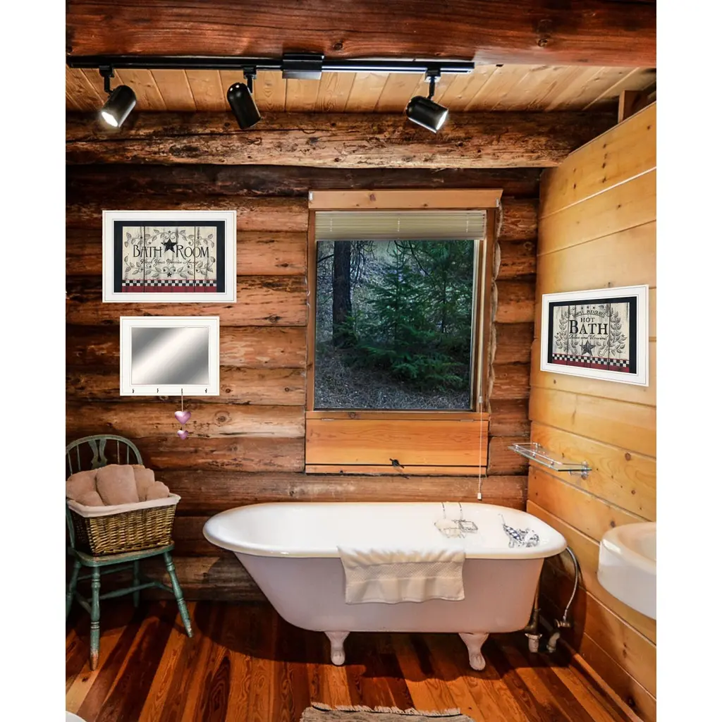 Bring some sizzle to your space with this eye-catching set of three hot bath 3-piece vignette 15 white framed print wall art. This print is a visual artistic expression that allows you to decorate your space in style. Reproduced for you on paper, this hanging decorative accent will be a trendy and fashionable way to dress your walls. Hang on your wall to add some up to date fashion and decoration. Instantly liven up your space with this art that brings color and dimension to your walls. 15" H x 19" W x 1" D