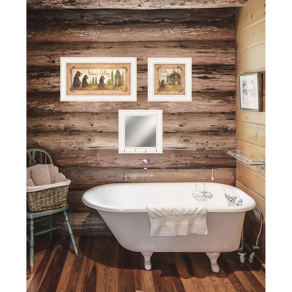 The set of three nature bath 3-piece vignette 1 white framed print wall art is the perfect decorative accessory for your home. Update your walls with this woodland animal decor. This print is a visual artistic expression that allows you to decorate your space in style. Reproduced for you on paper, this hanging decorative accent will be a trendy and fashionable way to dress your walls. Adding this hanging wall art to your space to make your room feel more finished and attractive. Utilize this opportunity to create a focal point in the room with this fabulous wall decor option. 15" H x 19" W x 1" D