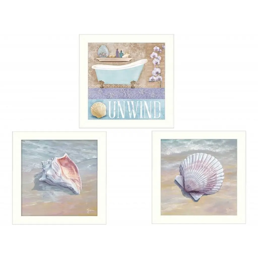 Add an air of fashion to your room and rejuvenate the space with this set of three shells i collection 3-piece vignette white framed print wall art. This print is a visual artistic expression that allows you to decorate your space in style. Reproduced for you on paper, this hanging decorative accent will be a trendy and fashionable way to dress your walls. Adding this hanging wall art to your space to make your room feel more finished and attractive. Utilize this opportunity to create a focal point in the room with this fabulous wall decor option. 14" H x 42" W x 1.5" D