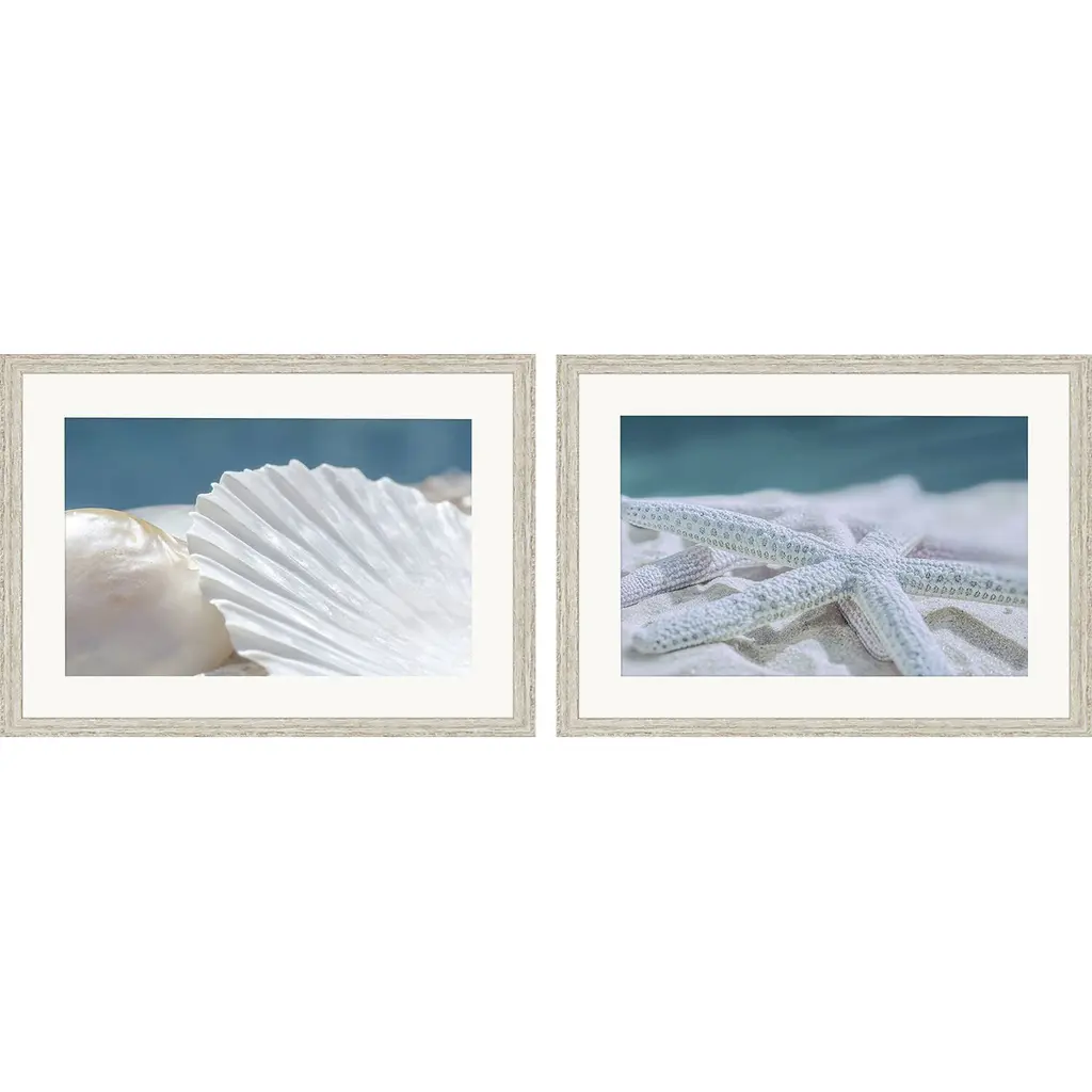 Add an air of fashion to your room and rejuvenate the space with this set of three shells ii white framed print bathroom wall art. This print is a visual artistic expression that allows you to decorate your space in style. Reproduced for you on paper, this hanging decorative accent will be a trendy and fashionable way to dress your walls. Hang on your wall to add some up to date fashion and decoration. Utilize this opportunity to create a focal point in the room with this fabulous wall decor option. 14" H x 42" W x 1.5" D