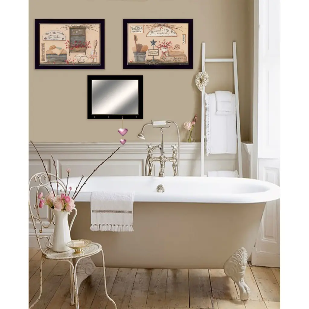 Add an air of fashion to your room and rejuvenate the space with this set of three wash room 6 black framed print wall art. This print is a visual artistic expression that allows you to decorate your space in style. Reproduced for you on paper, this hanging decorative accent will be a trendy and fashionable way to dress your walls. Adding this hanging wall art to your space to make your room feel more finished and attractive. Instantly liven up your space with this art that brings color and dimension to your walls. 14" H x 18" W x 1" D