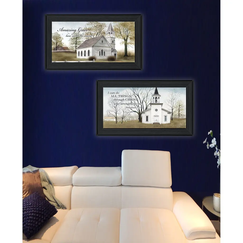The set of two amazing grace collection 2-piece vignette 3 black framed print wall art is the perfect decorative accessory for your home. This print is a visual artistic expression that allows you to decorate your space in style. Reproduced for you on paper, this hanging decorative accent will be a trendy and fashionable way to dress your walls. Adding this hanging wall art to your space to make your room feel more finished and attractive. Instantly liven up your space with this art that brings color and dimension to your walls. 12" H x 21" W x 1" D