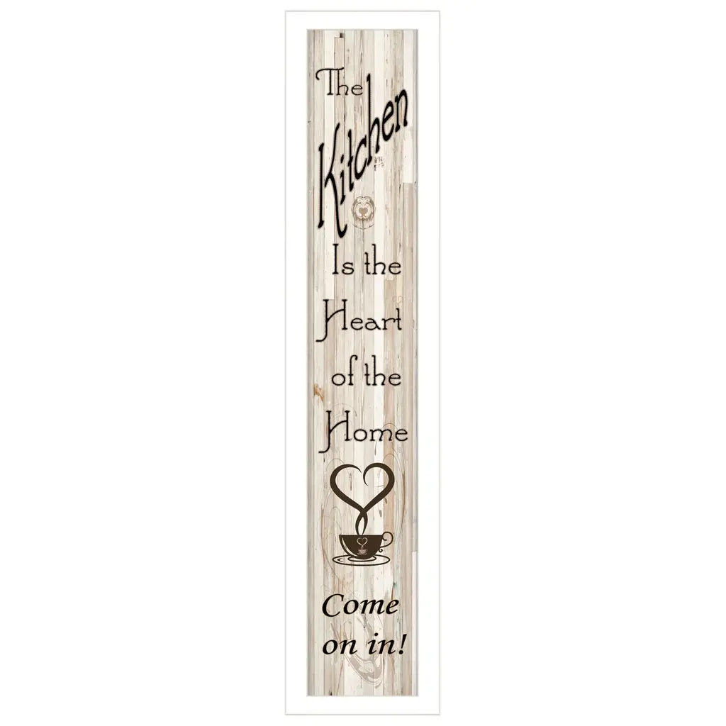 Bring some sizzle to your space with this eye-catching set of two come on in 2-piece vignette with 7-peg mug rack 2 black framed print wall art. This print is a visual artistic expression that allows you to decorate your space in style. Reproduced for you on paper, this hanging decorative accent will be a trendy and fashionable way to dress your walls. Adding this hanging wall art to your space to make your room feel more finished and attractive. Utilize this opportunity to create a focal point in the room with this fabulous wall decor option. 32" H x 7" W x 3" D
