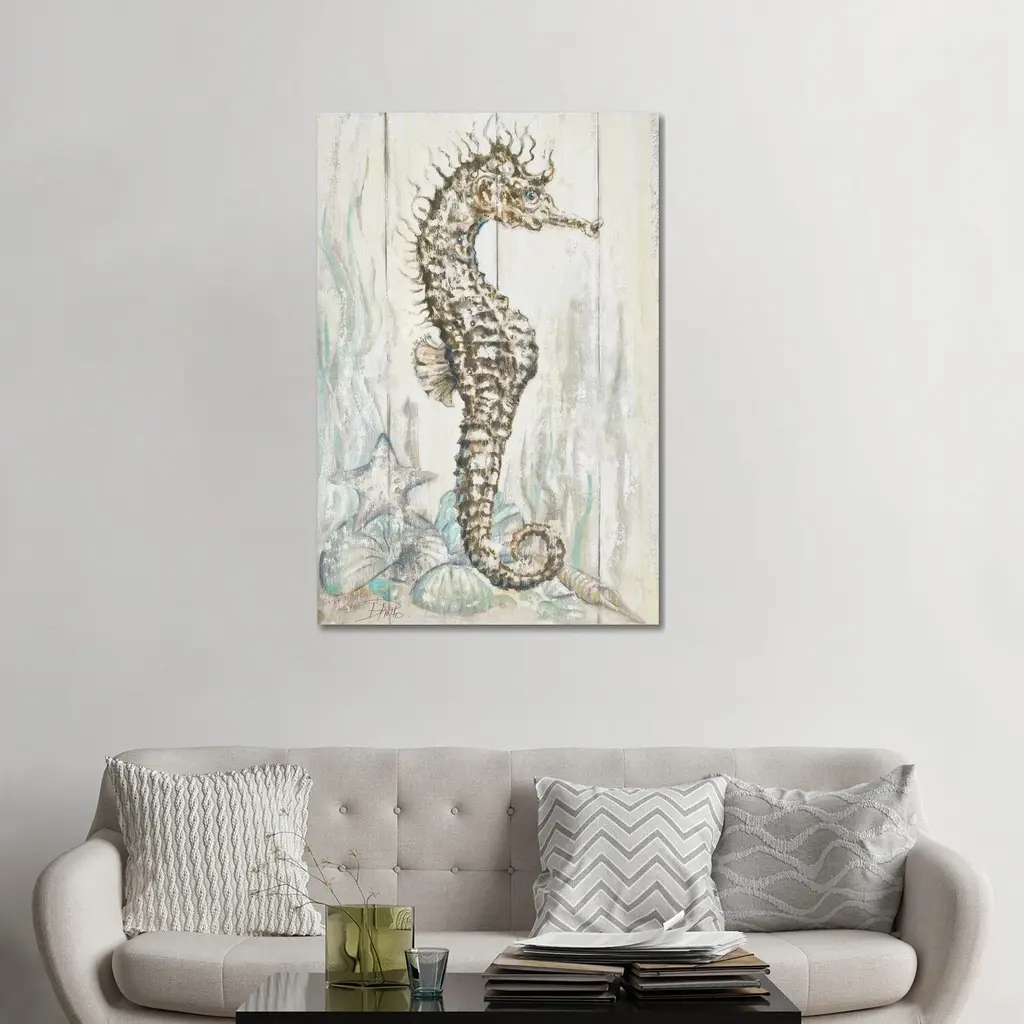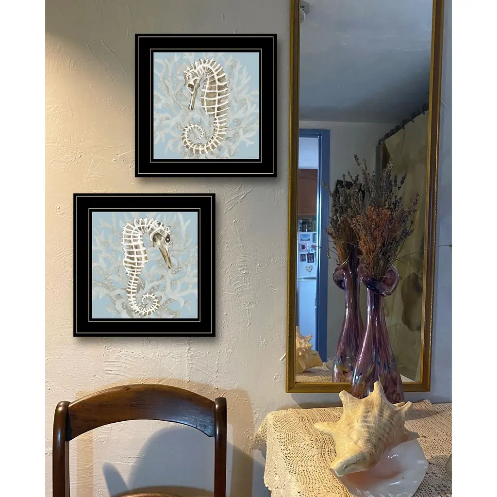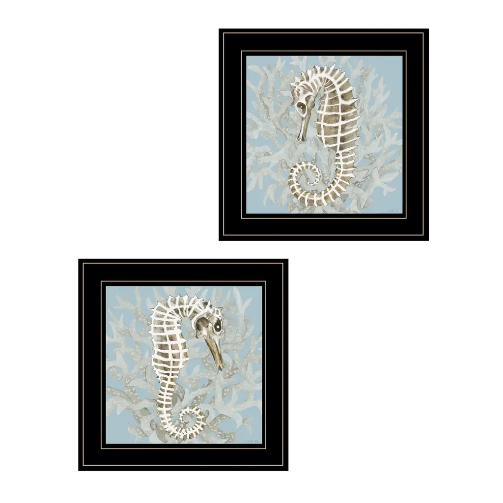 This set of two coral seahorse 1 black framed print wall art will add a beautiful decorative accent to your decor. This print is a visual artistic expression that allows you to decorate your space in style. Reproduced for you on wood, this hanging decorative accent will be a trendy and fashionable way to dress your walls in a rustic and modern farmhouse vibe. Hang on your wall to add some up to date fashion and decoration. Utilize this opportunity to create a focal point in the room with this fabulous wall decor option. 31" H x 15" W x 1" D
