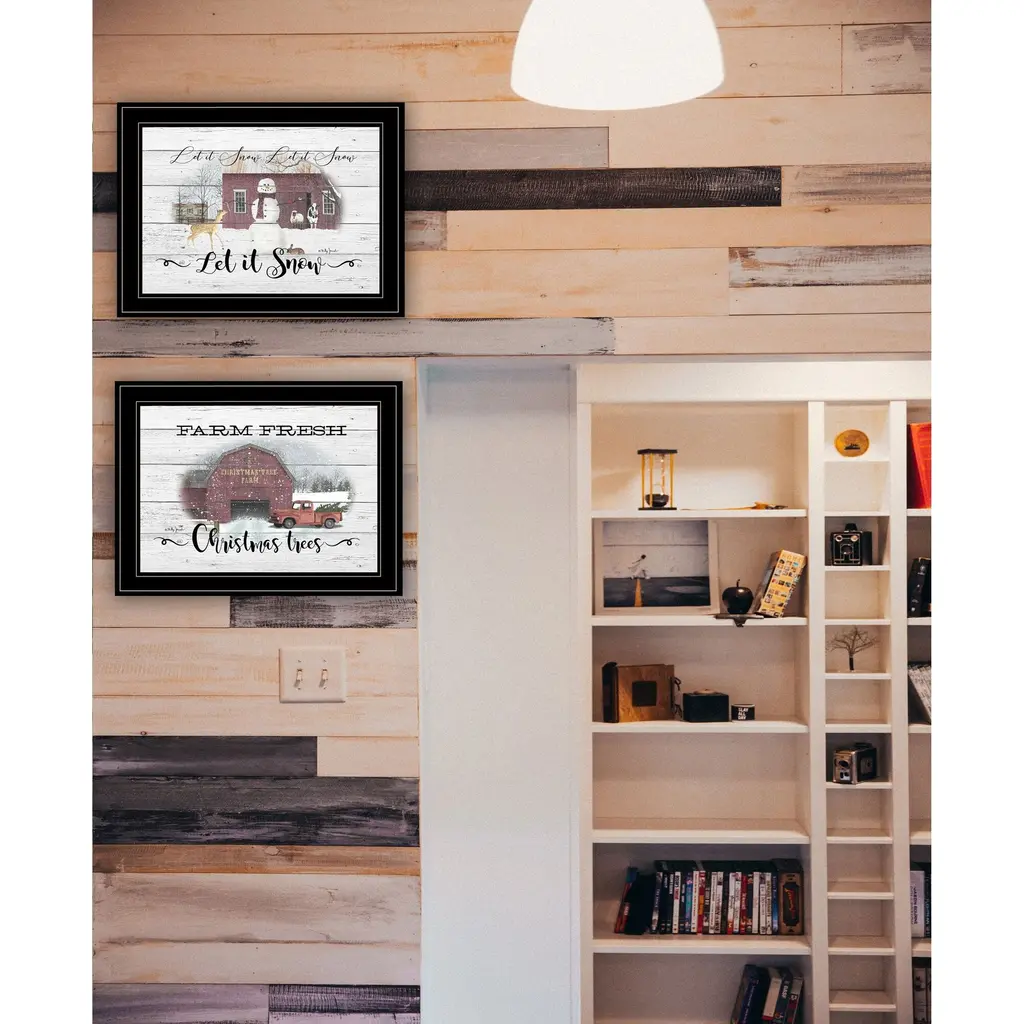 Set a festive Christmas mood with this set of two farm Christmas trees and snow black framed print wall art. This print is a visual artistic expression that allows you to decorate your space in style. Reproduced for you on paper, this hanging decorative accent will be a trendy and fashionable way to dress your walls. Adding this hanging wall art to your space to make your room feel more finished and attractive. Instantly liven up your space with this art that brings color and dimension to your walls. 15" H x 19" W x 1" D