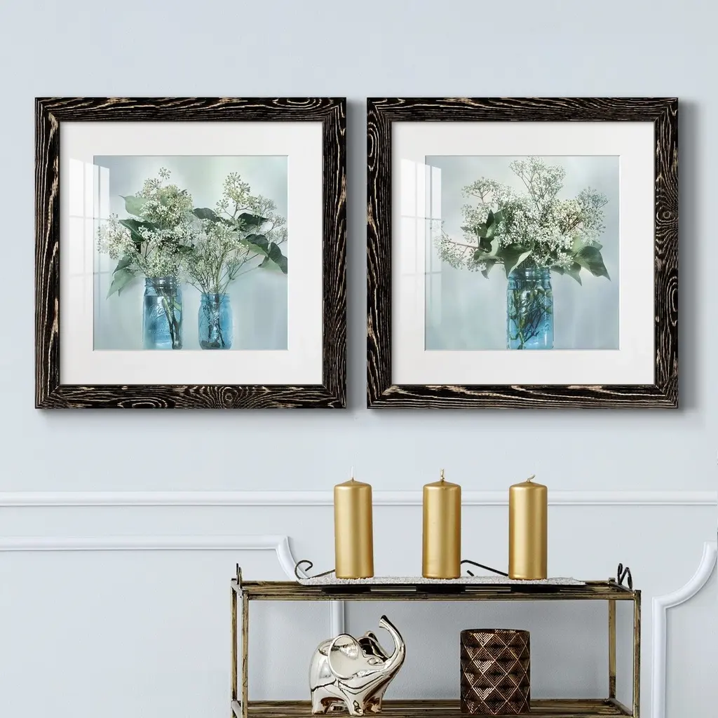 Set Of Two Flowers 1 Black Framed Print Wall Art - Black