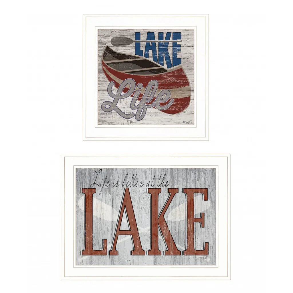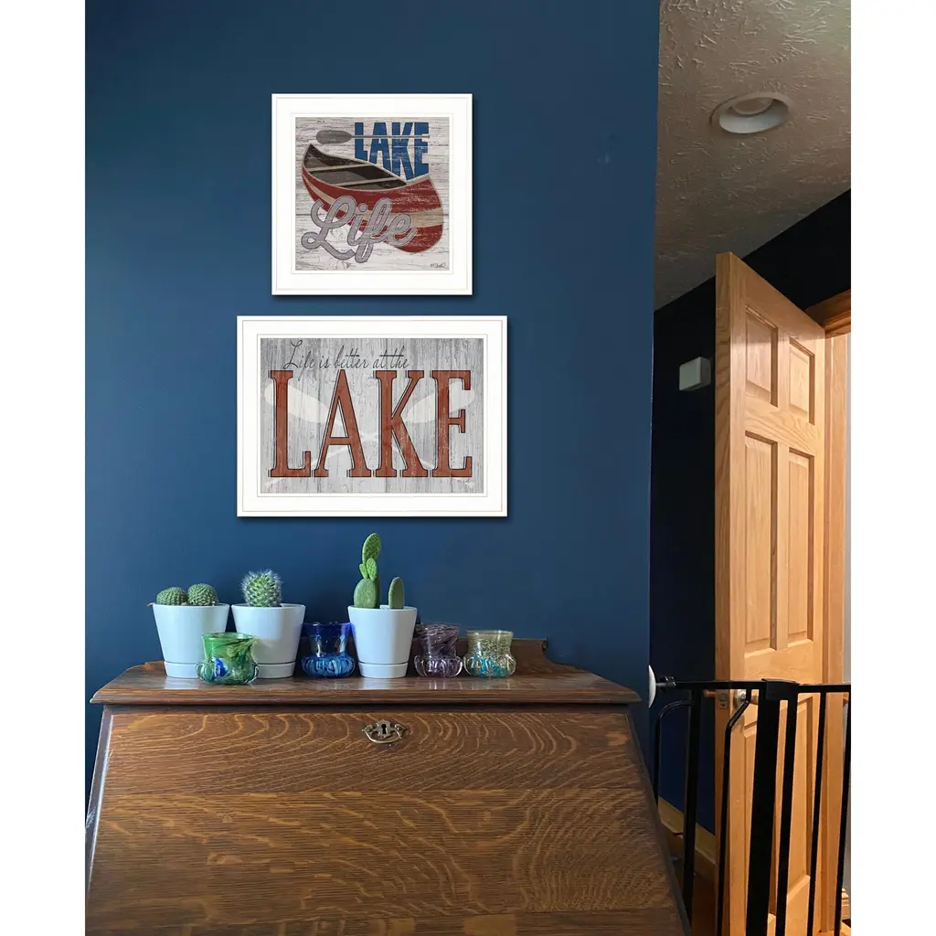 The set of two lake life is better 2-piece vignette 1 white framed print wall art is the perfect decorative accessory for your home. This transportation inspired wall art features a boat icon and will bring a refreshing look and perspective to your walls. This print is a visual artistic expression that allows you to decorate your space in style. Reproduced for you on wood, this hanging decorative accent will be a trendy and fashionable way to dress your walls in a rustic and modern farmhouse vibe. Hang on your wall to add some up to date fashion and decoration. Utilize this opportunity to create a focal point in the room with this fabulous wall decor option. 31" H x 19" W x 1" D