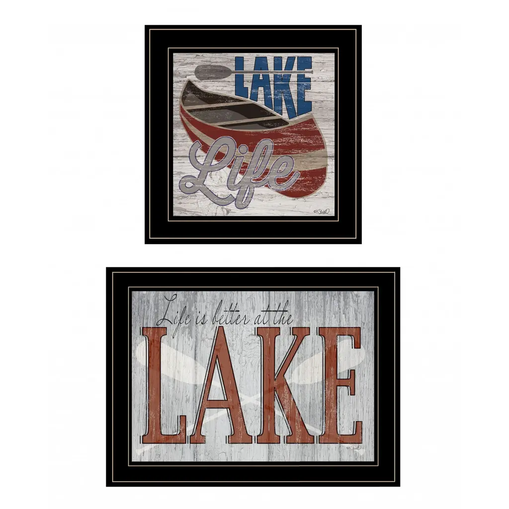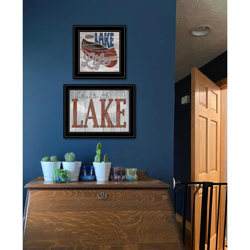 Set Of Two Lake Life Is Better 2 Black Framed Print Wall Art - Black