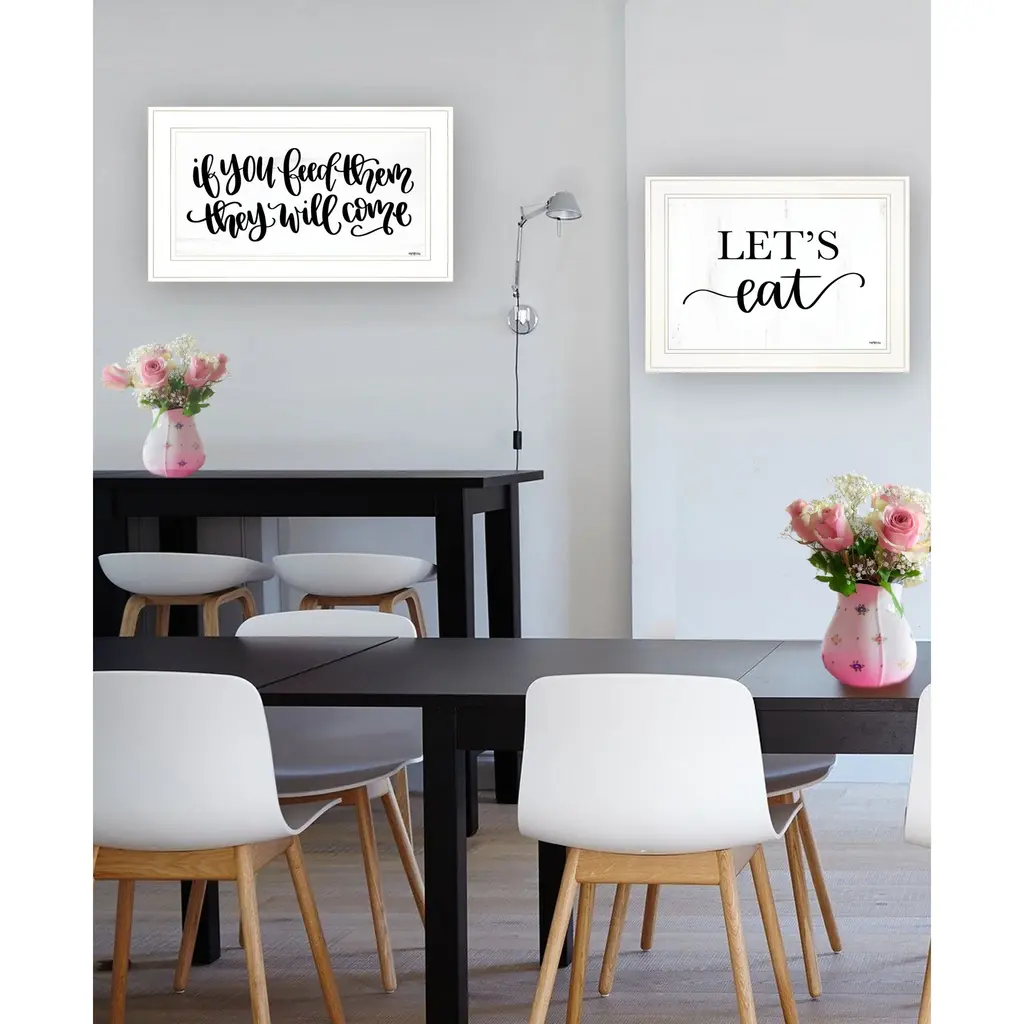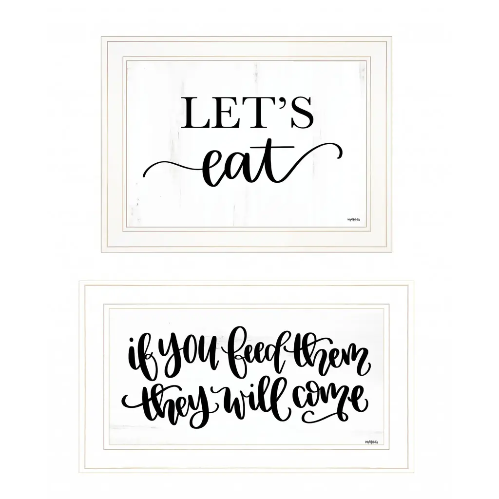 The set of two lets eat or feed them vignette 1 white framed print wall art is the perfect decorative accessory for your home. This print is a visual artistic expression that allows you to decorate your space in style. Reproduced for you on wood, this hanging decorative accent will be a trendy and fashionable way to dress your walls in a rustic and modern farmhouse vibe. Adding this hanging wall art to your space to make your room feel more finished and attractive. Utilize this opportunity to create a focal point in the room with this fabulous wall decor option. 31" H x 19" W x 1" D