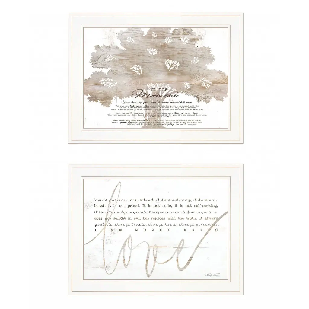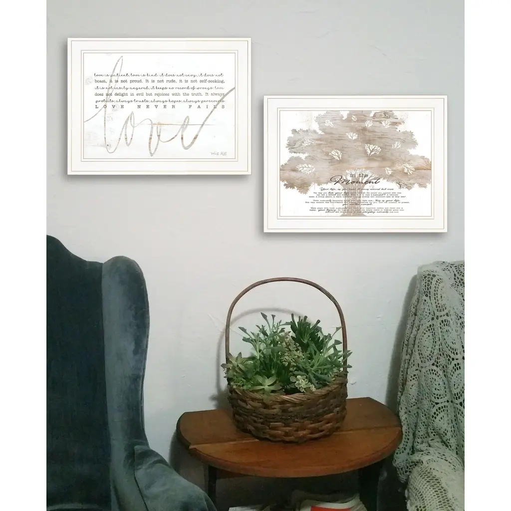 Add an air of fashion to your room and rejuvenate the space with this set of two love / in the moment white framed print wall art. This print is a visual artistic expression that allows you to decorate your space in style. Reproduced for you on wood, this hanging decorative accent will be a trendy and fashionable way to dress your walls in a rustic and modern farmhouse vibe. Hang on your wall to add some up to date fashion and decoration. Instantly liven up your space with this art that brings color and dimension to your walls. 31" H x 19" W x 1" D