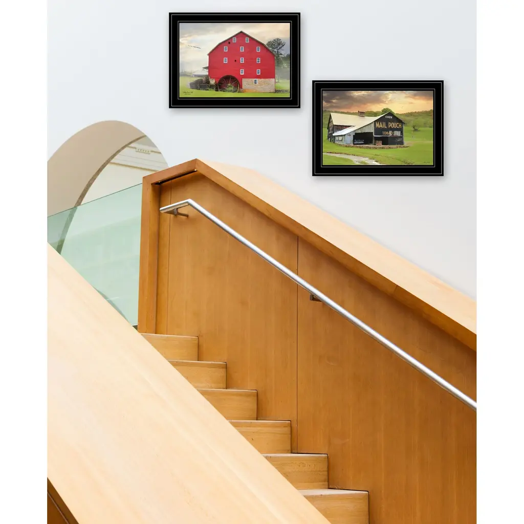 Set Of Two Mail Pouch Barn And Mill 2 Black Framed Print Wall Art - Black