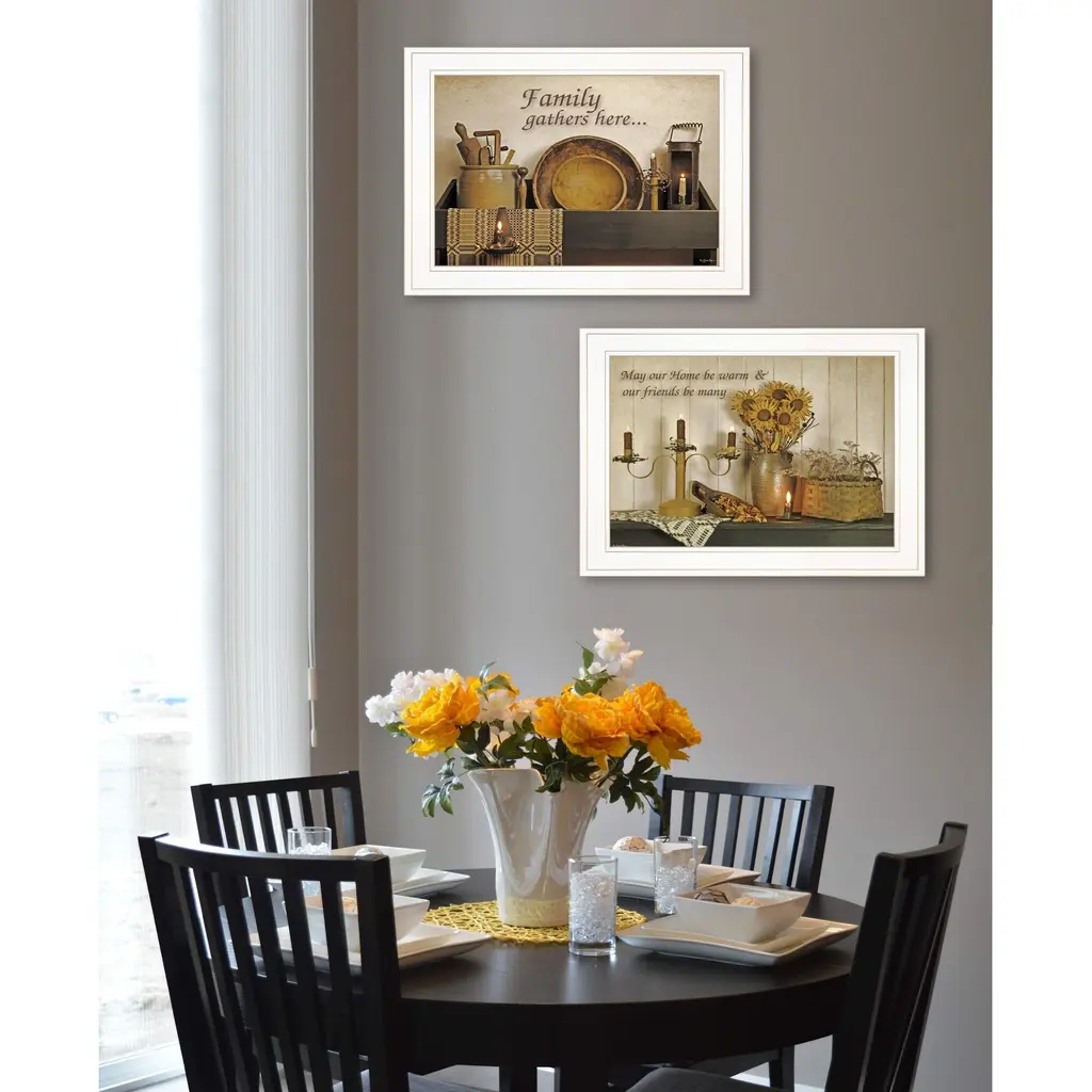 Bring some sizzle to your space with this eye-catching set of two may our hearts be warm vignette 1 white framed print kitchen wall art. This print is a visual artistic expression that allows you to decorate your space in style. Reproduced for you on paper, this hanging decorative accent will be a trendy and fashionable way to dress your walls. Hang on your wall to add some up to date fashion and decoration. Utilize this opportunity to create a focal point in the room with this fabulous wall decor option. 15" H x 19" W x 1" D
