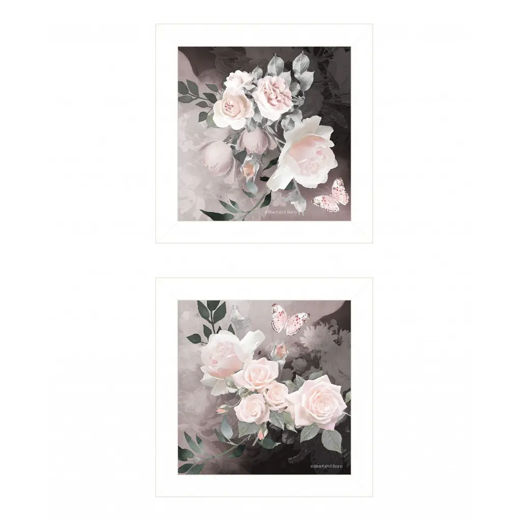 The set of two noir roses collection 2-piece vignette 5 white framed print wall art is the perfect decorative accessory for your home. This print is a visual artistic expression that allows you to decorate your space in style. Reproduced for you on wood, this hanging decorative accent will be a trendy and fashionable way to dress your walls in a rustic and modern farmhouse vibe. Hang on your wall to add some up to date fashion and decoration. Instantly liven up your space with this art that brings color and dimension to your walls. 15" H x 30" W x 1" D