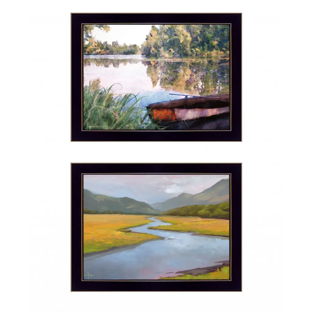 Set Of Two Serene Water 3 Black Framed Print Wall Art - Black