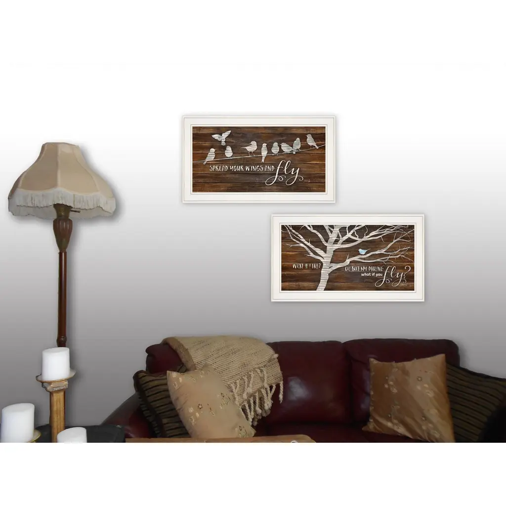 Add an air of fashion to your room and rejuvenate the space with this set of two spread your wings 2-piece vignette 1 white framed print wall art. This print is a visual artistic expression that allows you to decorate your space in style. Reproduced for you on paper, this hanging decorative accent will be a trendy and fashionable way to dress your walls. Hang on your wall to add some up to date fashion and decoration. Utilize this opportunity to create a focal point in the room with this fabulous wall decor option. 15" H x 27" W x 1" D