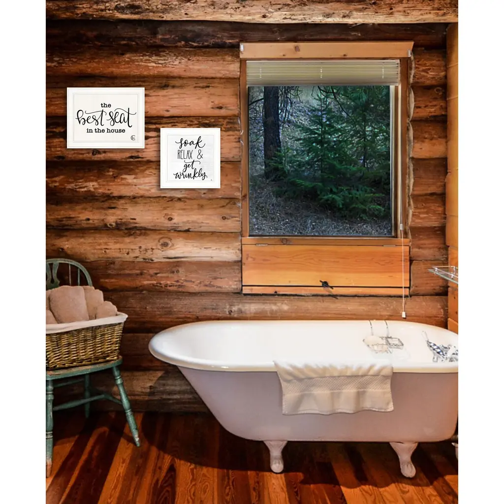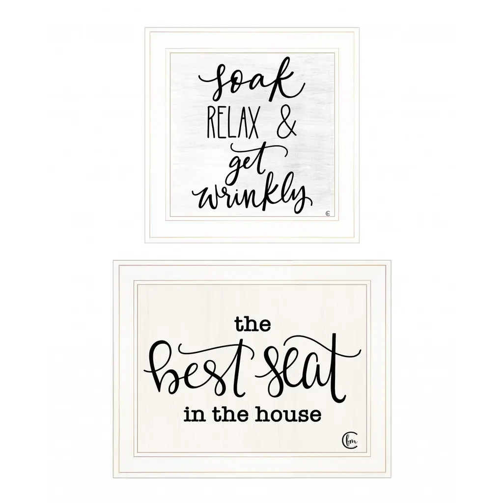 Unique and decorative, this set of two the best seat in the house 2-piece vignette 1 white framed print wall art will leave a lasting impression. This print is a visual artistic expression that allows you to decorate your space in style. Reproduced for you on wood, this hanging decorative accent will be a trendy and fashionable way to dress your walls in a rustic and modern farmhouse vibe. Hang on your wall to add some up to date fashion and decoration. Utilize this opportunity to create a focal point in the room with this fabulous wall decor option. 19" H x 31" W x 1" D