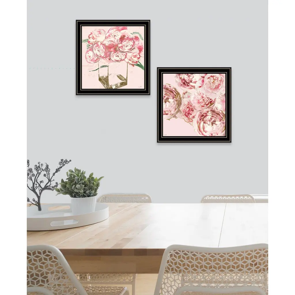 Bring some sizzle to your space with this eye-catching set of two the peonies collection 2-piece vignette 1 black framed print wall art. This print is a visual artistic expression that allows you to decorate your space in style. Reproduced for you on wood, this hanging decorative accent will be a trendy and fashionable way to dress your walls in a rustic and modern farmhouse vibe. Adding this hanging wall art to your space to make your room feel more finished and attractive. Utilize this opportunity to create a focal point in the room with this fabulous wall decor option. 14" H x 29" W x 1" D