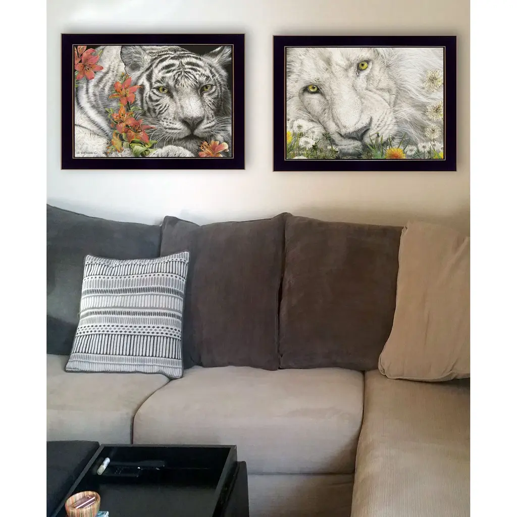 The set of two tiger lily dandy lion 2-piece vignette 3 black framed print wall art is the perfect decorative accessory for your home. Update your walls with this wild jungle animal decor. This print is a visual artistic expression that allows you to decorate your space in style. Reproduced for you on paper, this hanging decorative accent will be a trendy and fashionable way to dress your walls. Adding this hanging wall art to your space to make your room feel more finished and attractive. Instantly liven up your space with this art that brings color and dimension to your walls. 14" H x 18" W x 1" D