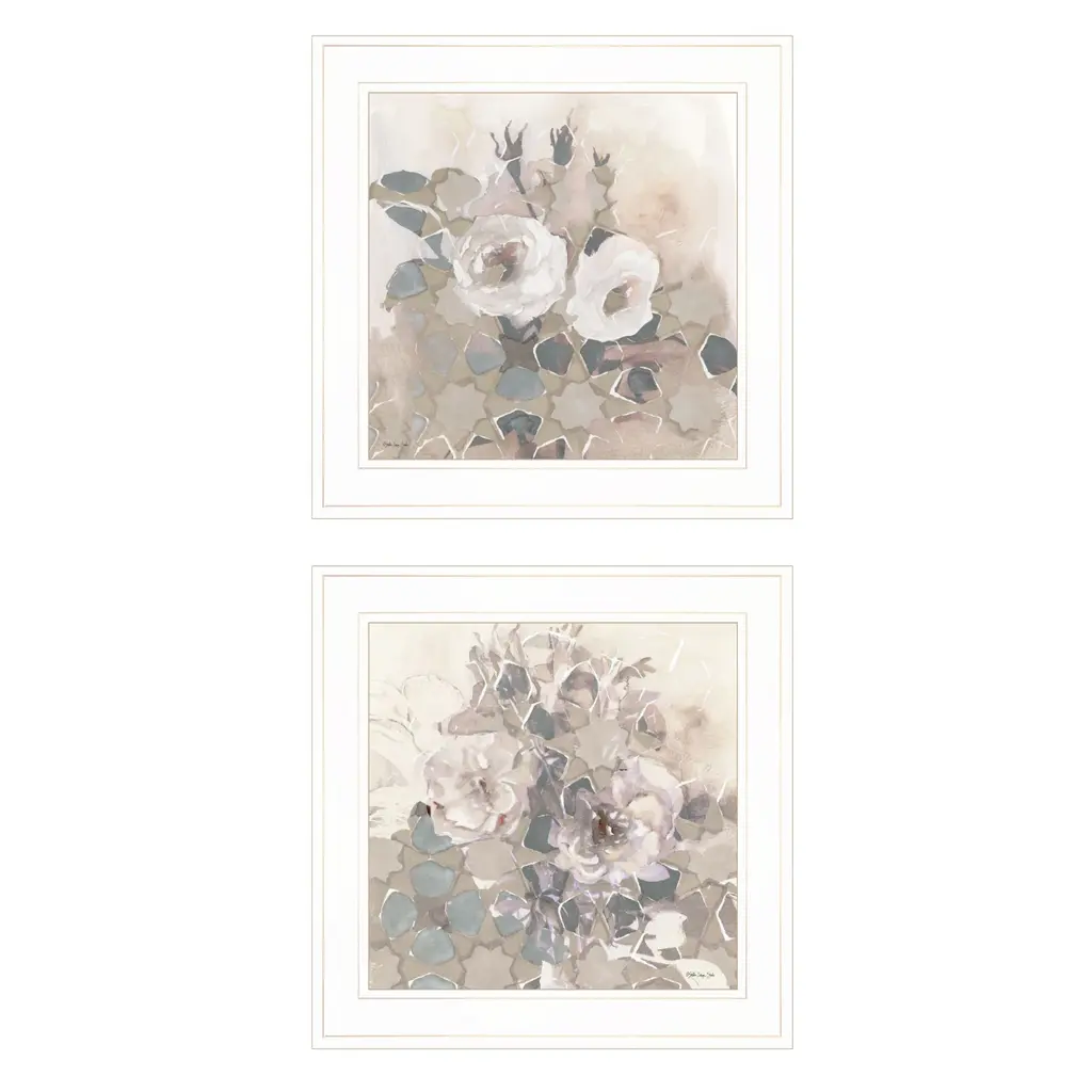 Add an air of fashion to your room and rejuvenate the space with this set of two transitional blooms 2-piece vignette 1 white framed print wall art. This print is a visual artistic expression that allows you to decorate your space in style. Reproduced for you on paper, this hanging decorative accent will be a trendy and fashionable way to dress your walls. Hang on your wall to add some up to date fashion and decoration. Instantly liven up your space with this art that brings color and dimension to your walls. 15" H x 15" W x 1" D