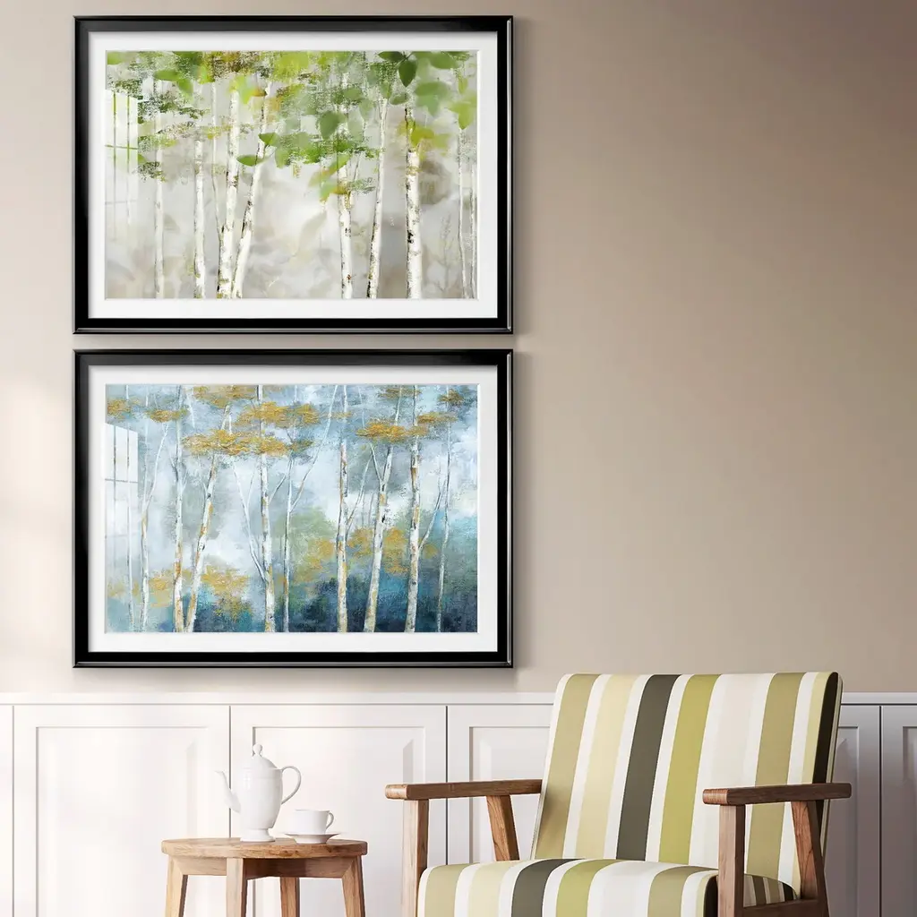 Set Of Two Transitional Blooms 3 Black Framed Print Wall Art - Black