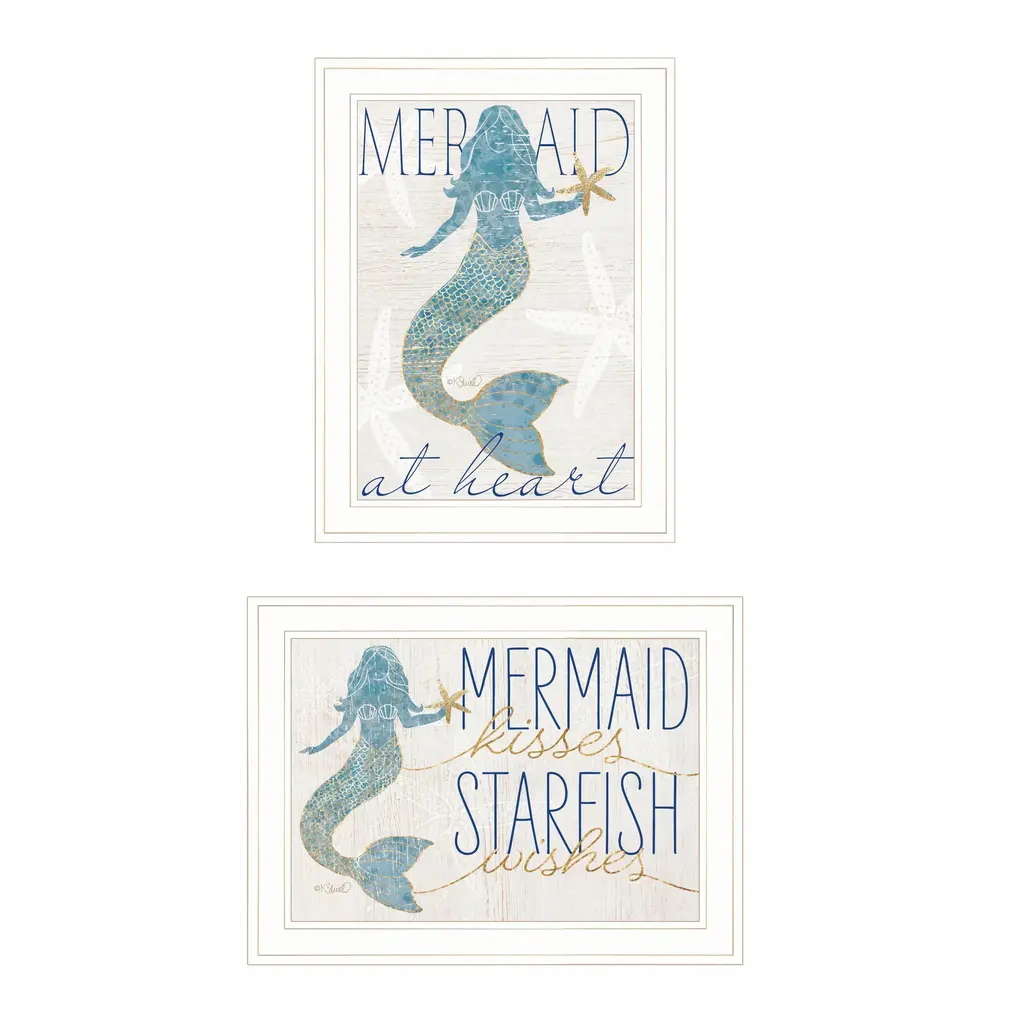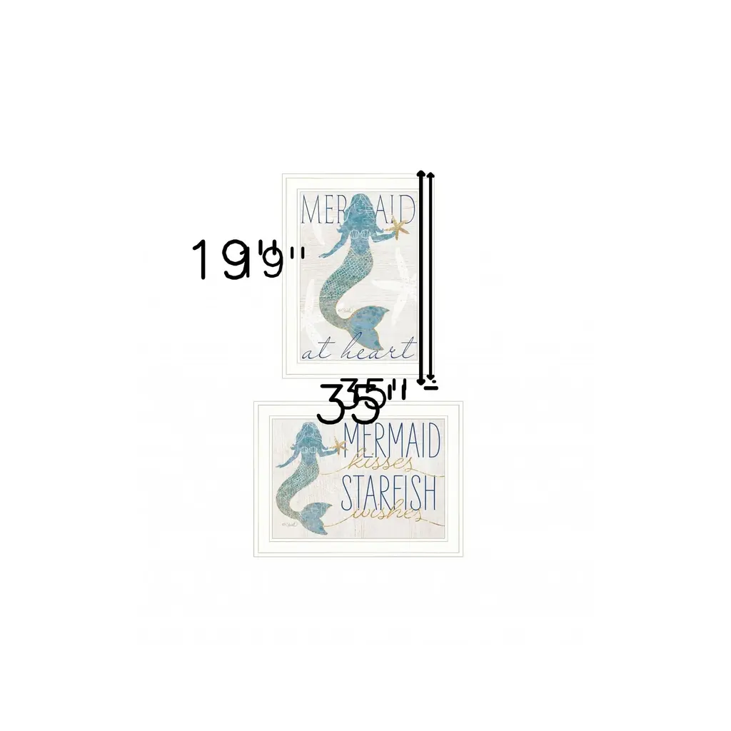Bring some sizzle to your space with this eye-catching set of two two mermaids 2-piece vignette 2 white framed print wall art. This print is a visual artistic expression that allows you to decorate your space in style. Reproduced for you on wood, this hanging decorative accent will be a trendy and fashionable way to dress your walls in a rustic and modern farmhouse vibe. Hang on your wall to add some up to date fashion and decoration. Instantly liven up your space with this art that brings color and dimension to your walls. 35" H x 19" W x 1" D