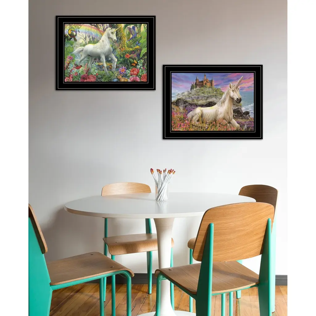 Bring some sizzle to your space with this eye-catching set of two unicorns for you vignette 2 black framed print living room wall art. This print is a visual artistic expression that allows you to decorate your space in style. Reproduced for you on paper, this hanging decorative accent will be a trendy and fashionable way to dress your walls. Hang on your wall to add some up to date fashion and decoration. Utilize this opportunity to create a focal point in the room with this fabulous wall decor option. 15" H x 19" W x 1" D