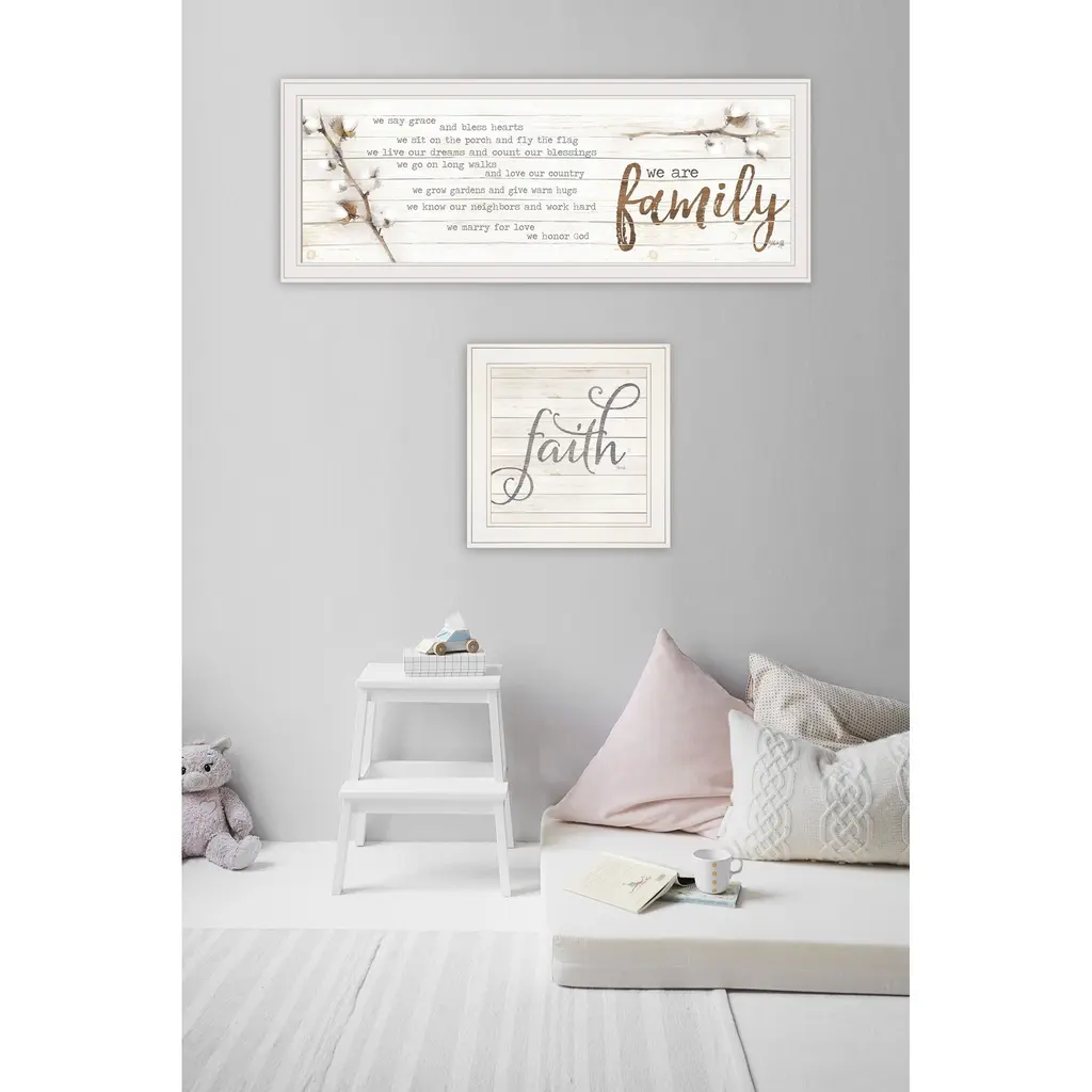 This set of two we are family 2-piece vignette 2 white framed print wall art will add a beautiful decorative accent to your decor. This print is a visual artistic expression that allows you to decorate your space in style. Reproduced for you on paper, this hanging decorative accent will be a trendy and fashionable way to dress your walls. Hang on your wall to add some up to date fashion and decoration. Instantly liven up your space with this art that brings color and dimension to your walls. 15" H x 39" W x 1" D