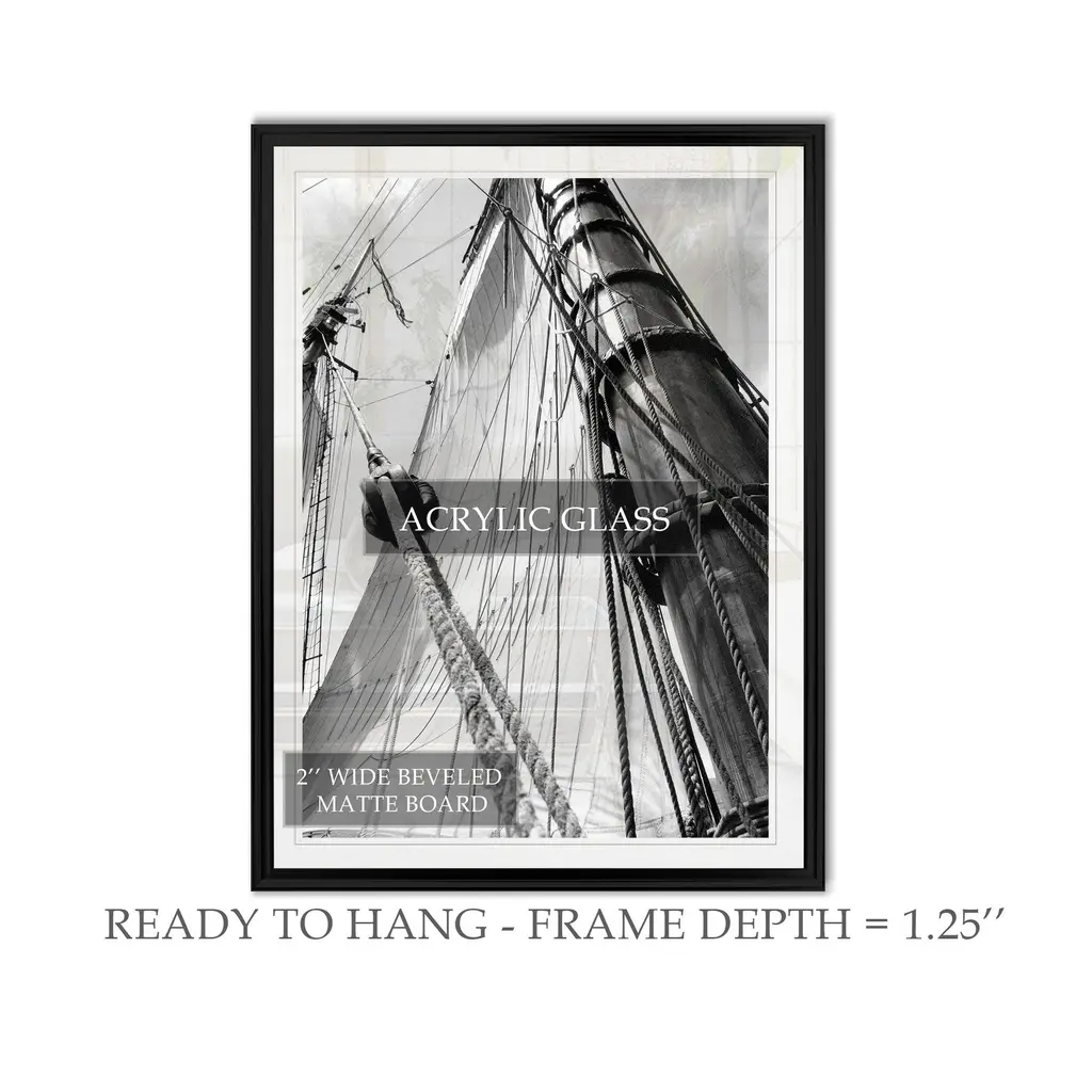 Set Sail III -Custom Framed Print A premium custom framed giclee print Featuring a beveled a matt , acrylic glass, and a high quality giclee print 4 SIZES AVAILABLE 18''x24''- Overall Size 22''x30'' - Overall Size 26''x36''' - Overall Size 30''x42''' - Overall Size Each piece is made to order. Built to Last Each piece comes ready to hang Fade and Water resistant Made domestically
