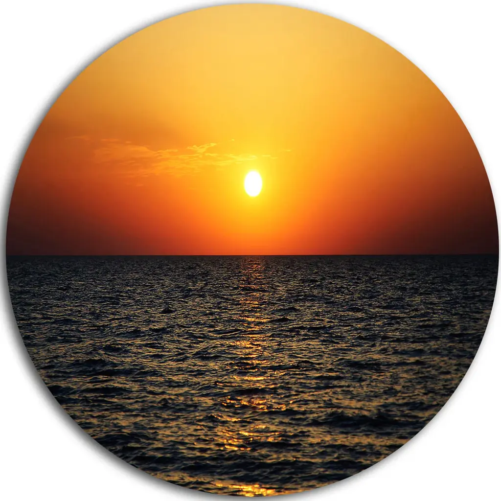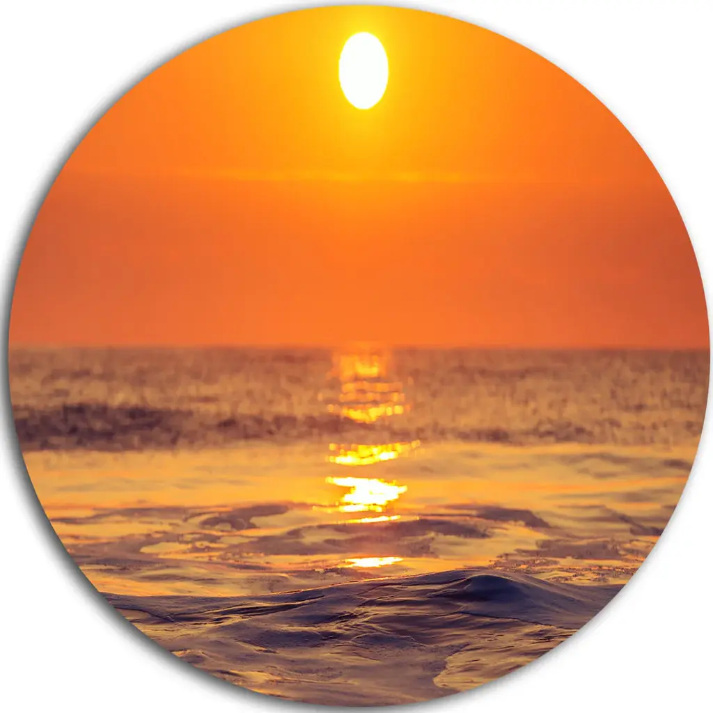 Setting Sun Giving Color To Waters, Beach Large Disc Metal Artwork, 11"