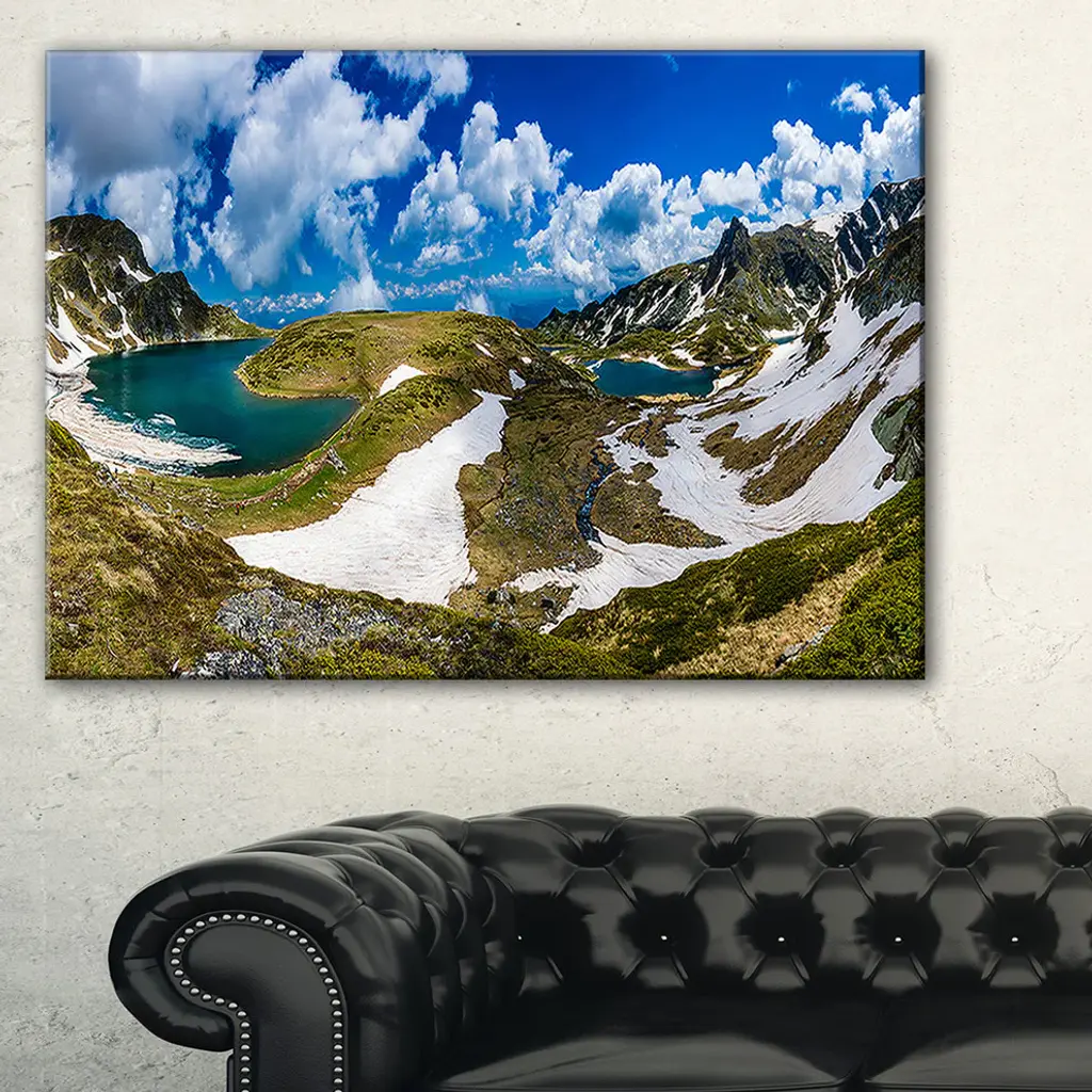 The Seven Rila Lakes in Bulgaria canvas art print is sure to make an impression on anyone who sees it. This artwork is gallery wrapped around a 1-inch solid wood frame and arrives carefully packaged and entirely ready to hang on the wall. Design Art only uses the highest resolution and pigments to ensure a crisp colorful print that is never faded or pixelated. This artwork is sure to be a conversation starter in any home or office.