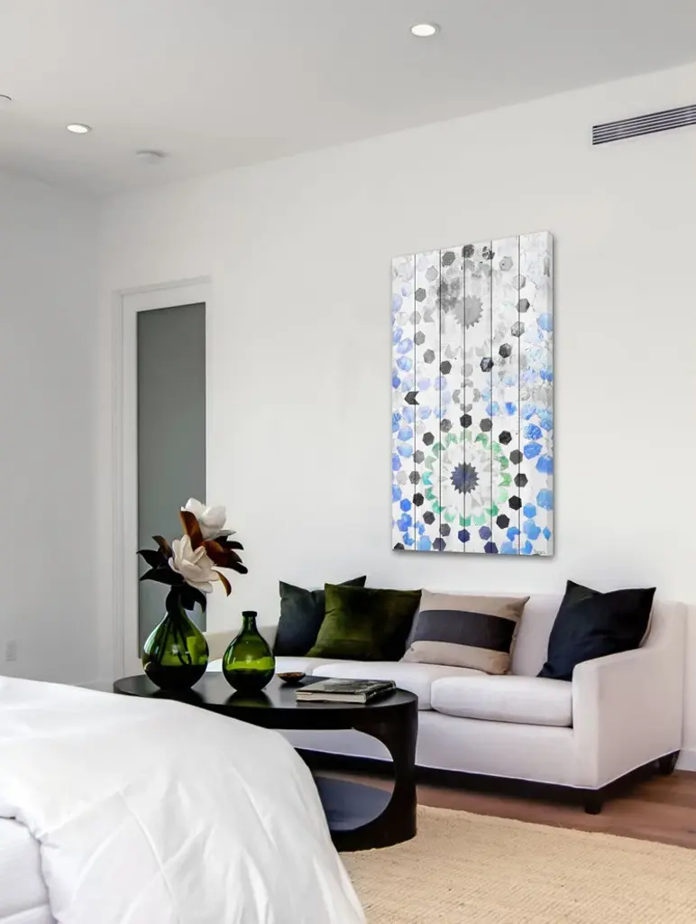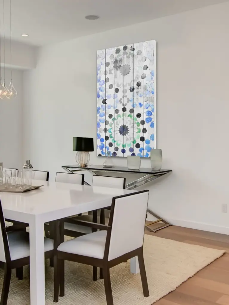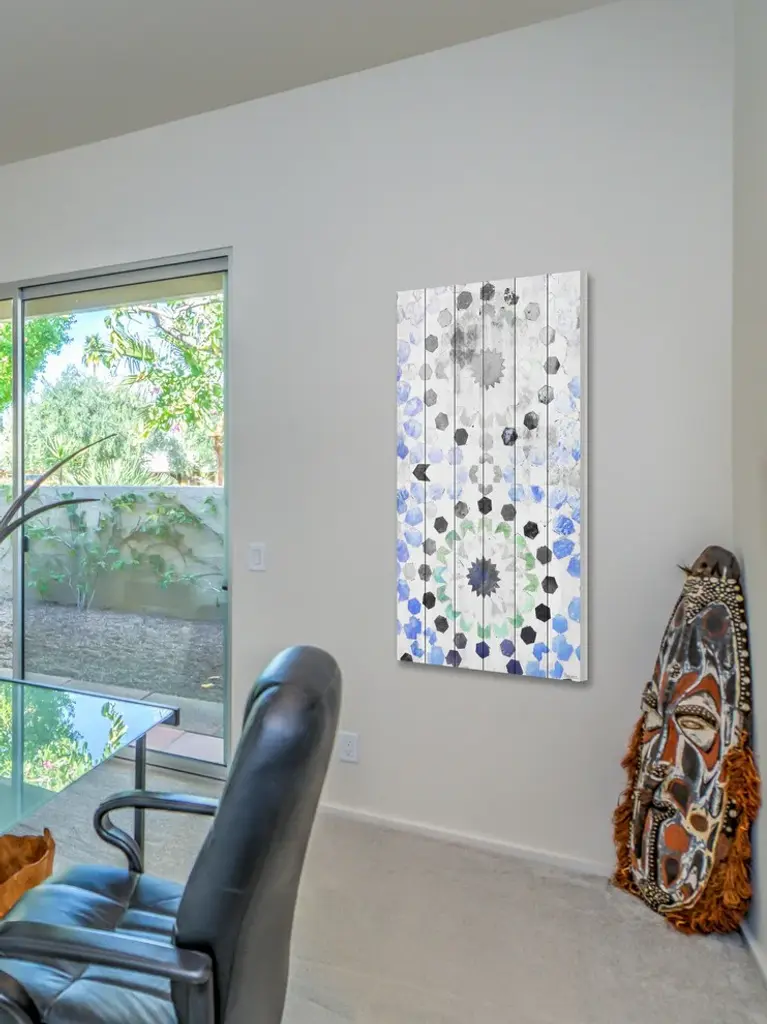 Striking and unique, the "Sevilla" Print on White Wood by Parvez Taj will bring your walls to life. Printed on white wood, this 20 inch wide by 40 inch tall contemporary artwork will make a statement in any living room, dining room, or bedroom.- Fine art UV ink print on white wood by Parvez Taj- wood pieces are hand-selected by Fine craftsmen for printing- Arrives ready to hang- Includes a certificate of authenticity- Artist signature on the front