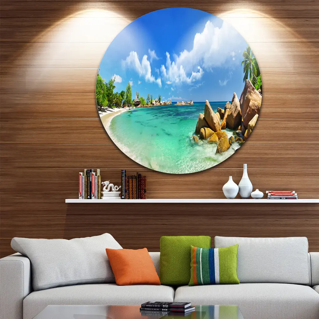 Seychelles Islands Panorama, Landscape Photo Disc Metal Wall Art, 38"