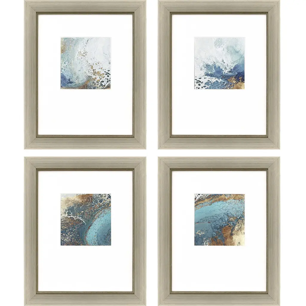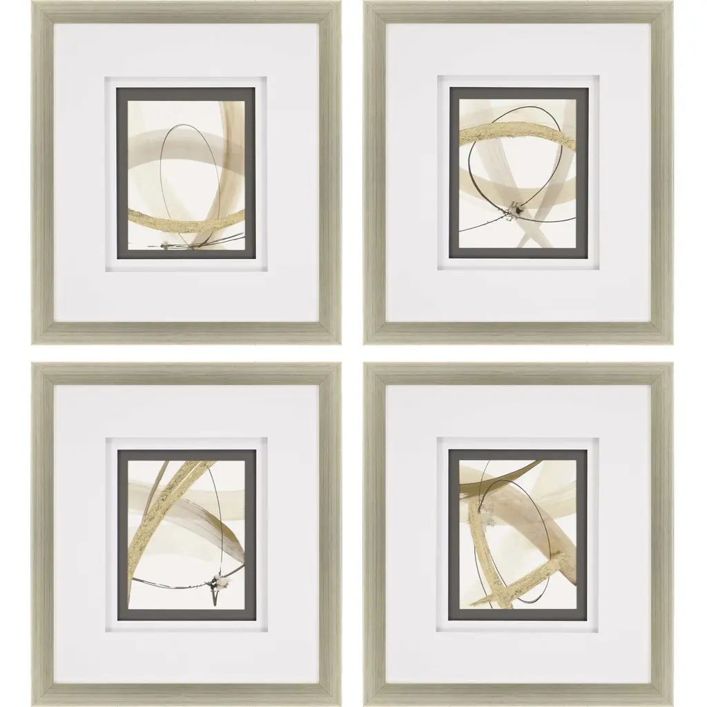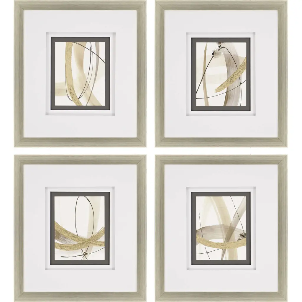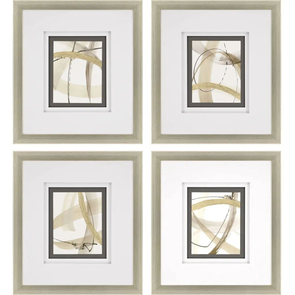 Shadow is a stunning set of four giclee prints on watercolor paper, featuring wispy black tones and a wealth of textural depth. The artwork showcases an opulent gold trim, matched by a gold gallery frame in a smooth finish.