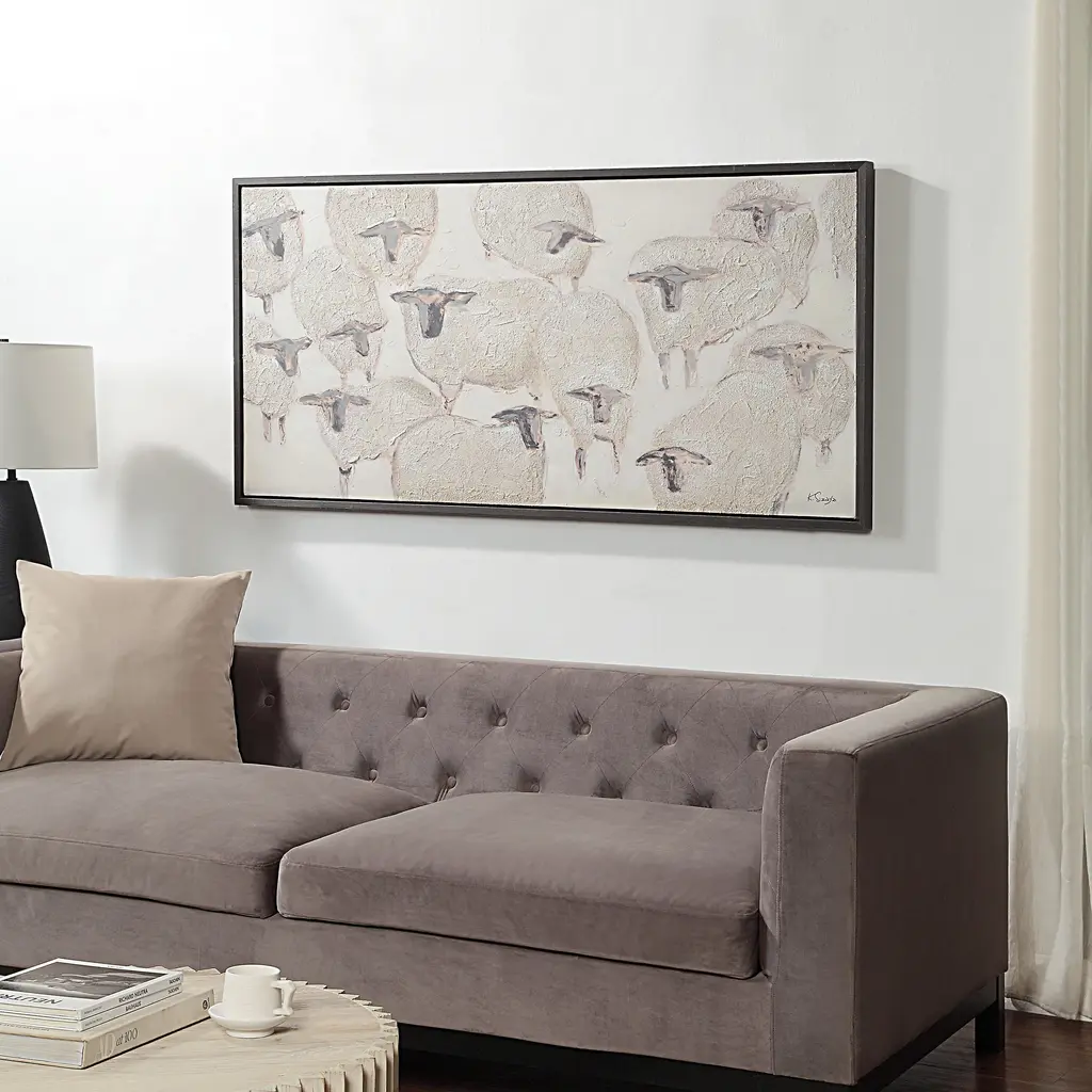 Enhance the aesthetics of any room with the Shah 60" Wide Canvas Art with Wood Frame in Dark Grey. The art piece is skillfully crafted with high-quality canvas and durable wood frame, ensuring its lasting elegance and durability. Its rich dark grey color adds depth and dimension to the painting, making it a great statement piece. The 100 hand-painted design offers a unique and one-of-a-kind artistry, meaning no two pieces are alike. The seamlessly finished continued edges give it a polished look from every angle, while horizontal hanging options provide versatility in how you choose to display it. The versatile size also allows for easy placement in any room, be it a living area, bedroom or study.