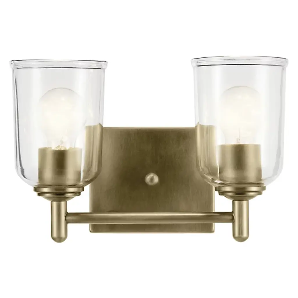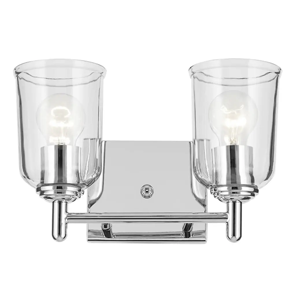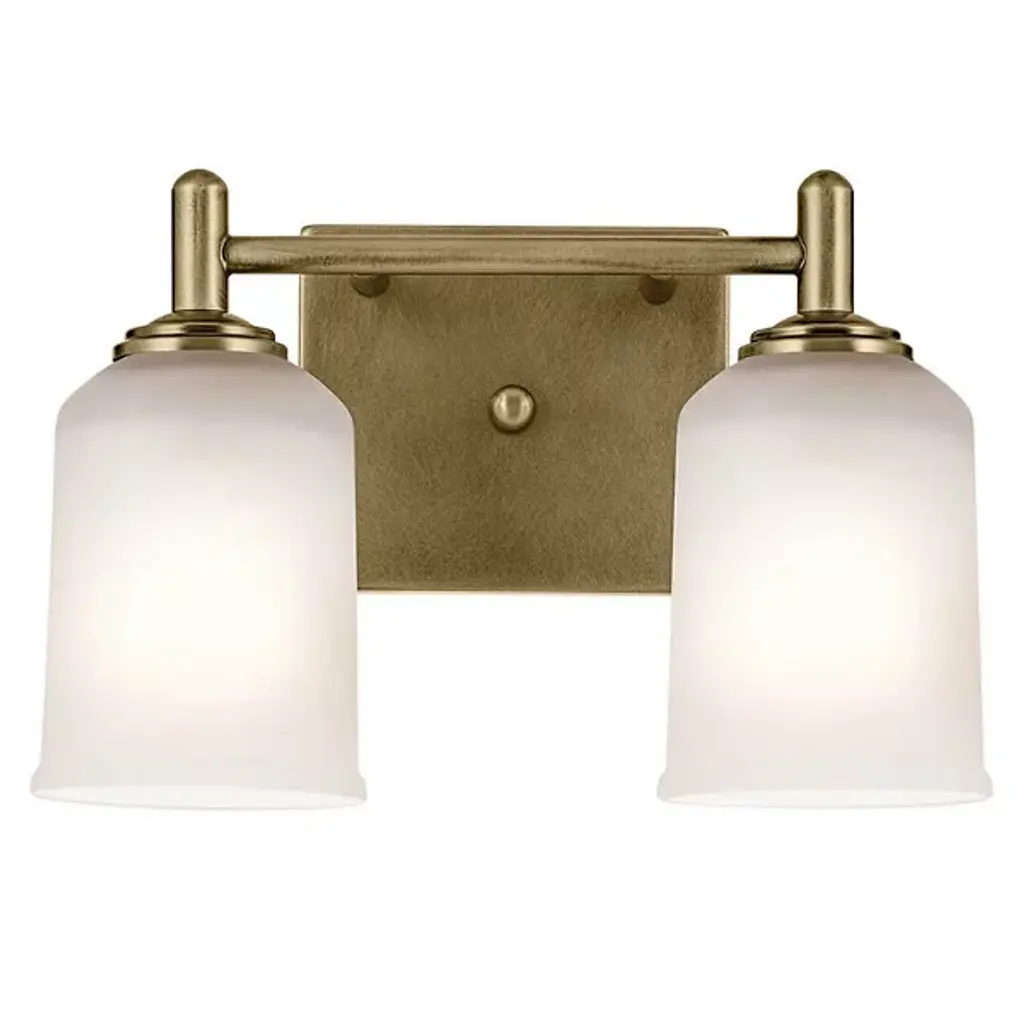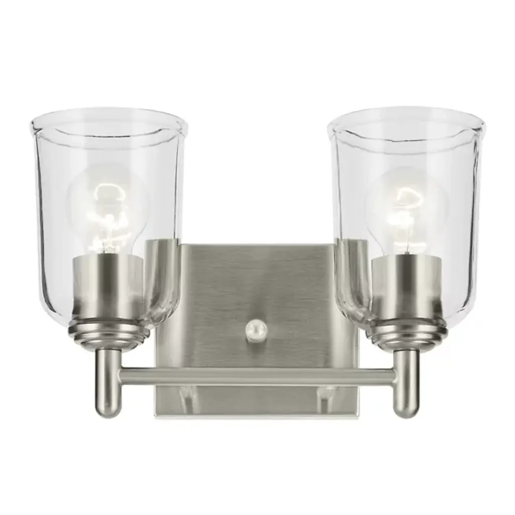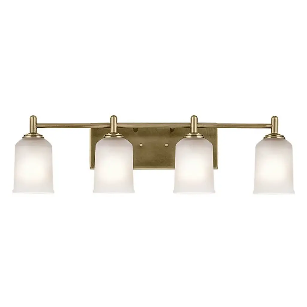 A step up in sophistication. The Shailene Vanity Light from Kichler is a transitional design, elevating the modern and traditional notes of a space. It's a crowning piece atop the bathroom mirror. To complement the aesthetic lines of the room, the bath bar can be mounted with the shades facing up or down. The piece presents a sleek modern character in its metal crossbar. Its satin etched glass shades give off a traditional feel in their simple forms and subtle accenting. When turned on, the bar generates a clean, soft, and spacious glow.