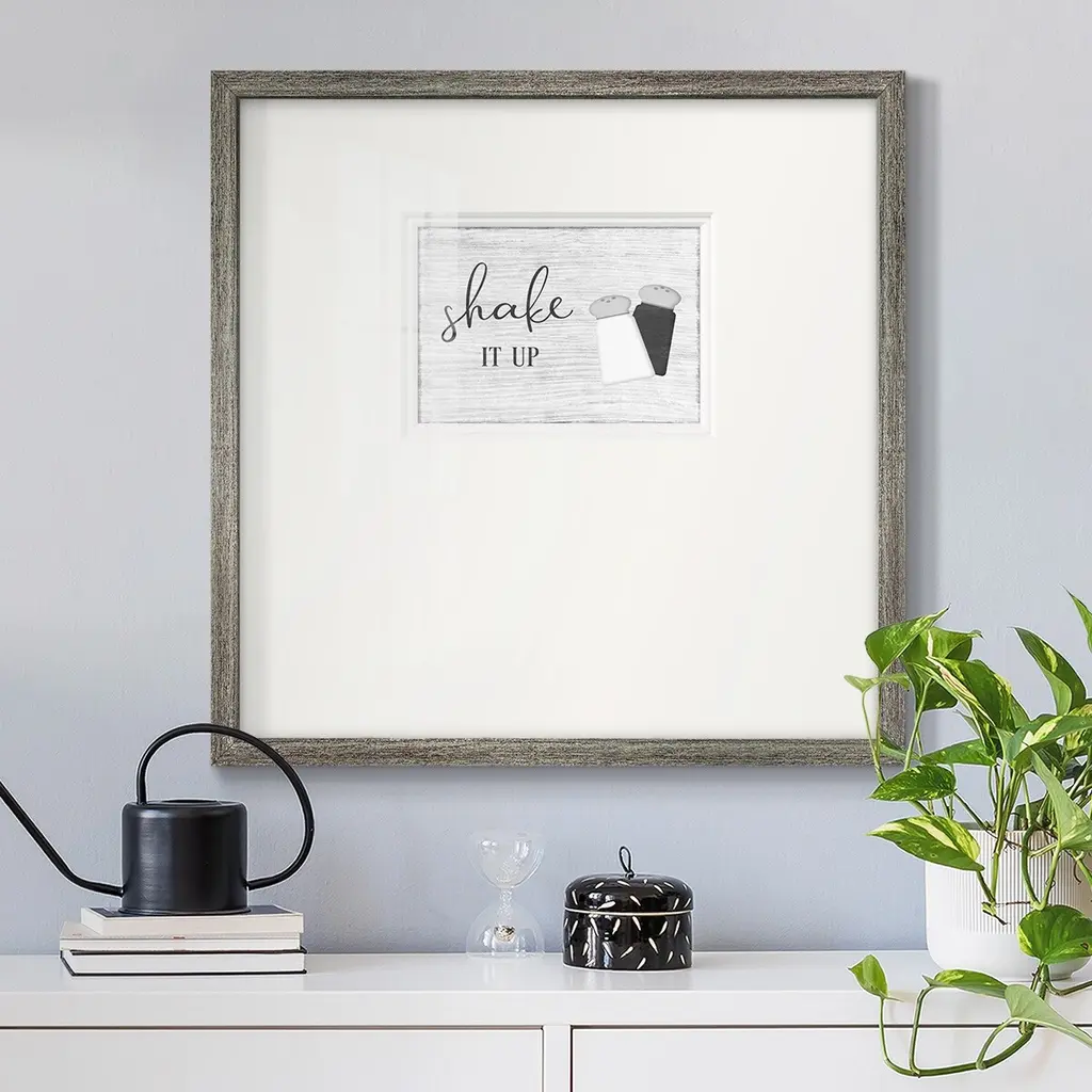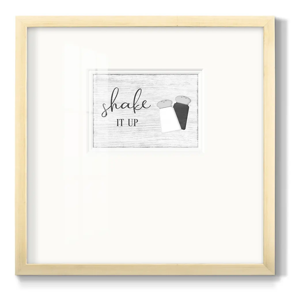 Shake It UpPremium Framed Print A framed cold pressed paper print featuring superior double matting and quality frame. 2 SIZES AVAILABLE 16''X16''' - Overall Size 20''X20''' - Overall Size Each piece is made to order. Each piece comes with hanging hardware. Made in the USA Ready to Hang Giclee Paper Print Plexiglass Beveled Matt Board Double Matte Board