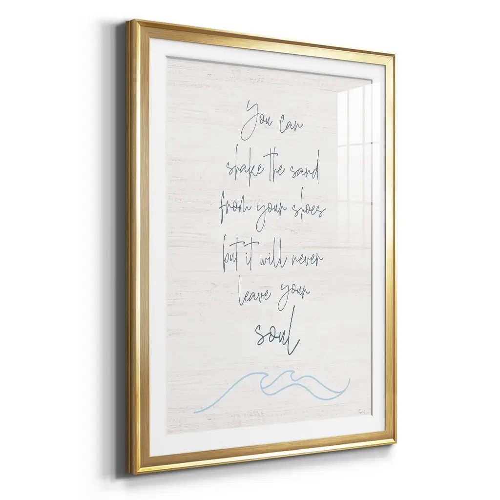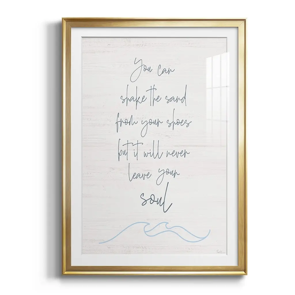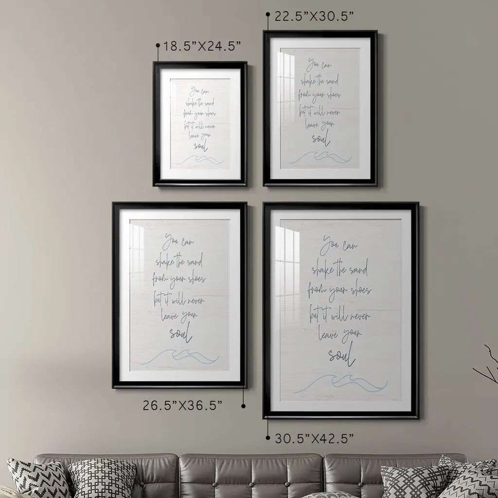 Shake the Sand Premium Framed Print - Ready to Hang A Premium Framed Print created to last. Framed in distressed wood and available in an array of sizes and colors Featuring a beveled a solid wood stretcher bar, each piece comes ready to hand 4 SIZES AVAILABLE 30.5''X42.5'' - Overall Size 26.5'X36.5'' - Overall Size 22.5''x30.5'' - Overall Size 18.5''x24.5'' - Overall Size Each piece is made to order. Each piece comes with hanging hardware. Made in the USA Ready to Hang Giclee Paper Print Acrylic Glass Beveled Matt Board