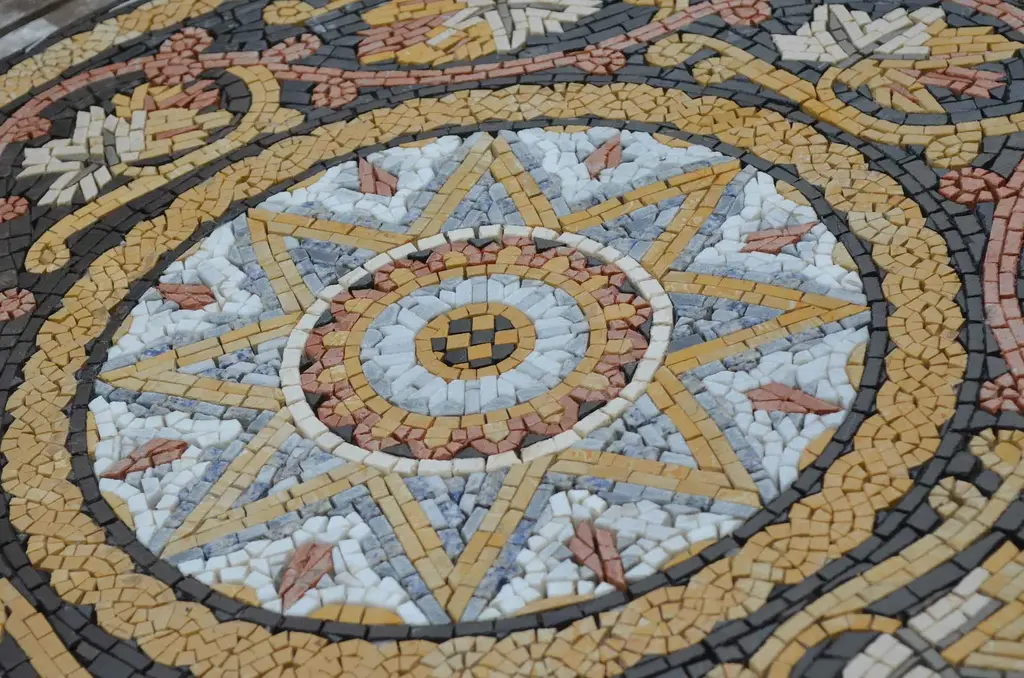 Introducing Shana's Botanical Roman Mosaic, where elegance meets artistry in a stunning piece that breathes life into any space. This exquisite mosaic is a celebration of intricate botanical patterns and vibrant colors, meticulously handcrafted to elevate your home décor with timeless sophistication. Each tile showcases the captivating beauty and allure of natural stone, making it a perfect addition to living rooms, dining areas, or cozy reading nooks. Imagine the compliments as guests are drawn to the dazzling charm of Shana's Botanical Roman Mosaic. Its unique design harmonizes effortlessly with diverse decor styles—from contemporary to classic—ensuring seamless integration into your environment. The rich, radiant colors and detailed craftsmanship create an inviting atmosphere that transforms your space into a sanctuary of style and comfort. This mosaic also evokes a serene sense of peace and tranquility, reminiscent of nature’s calming beauty. A true reflection of personal taste and appreciation for premium quality artistry, it is ideal for those who cherish luxury stone and exotic materials. Notably, the mosaic features the exotic Brazilian blue hues of Blue Bahia, offering rare azure tones and oceanic brilliance that infuse the design with deep cerulean sophistication and tropical blue luxury. The shimmering Blue Bahia elements add a jewel-like, prismatic radiance that captivates with their scintillating, cool-to-the-touch natural stone surface. Whether making a bold statement or adding a subtle touch of elegance, Shana's Botanical Roman Mosaic is the perfect choice. Don’t miss the opportunity to own this handcrafted masterpiece that blends art and nature in one breathtaking design. Order yours today and transform your home into a beautiful retreat filled with style and sophistication.
