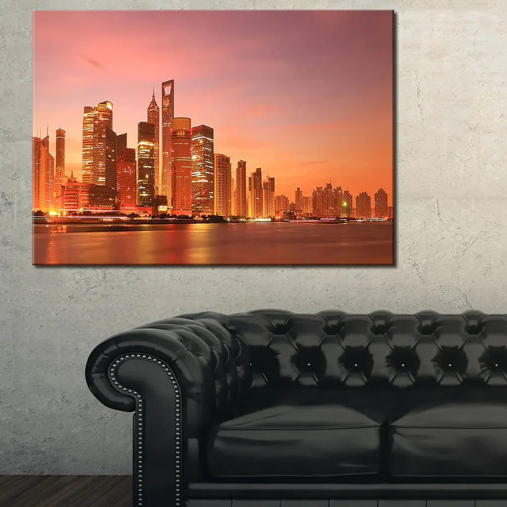 "Shanghai Skyline At Dawn" Cityscape Canvas Photo Print, 40"x20"