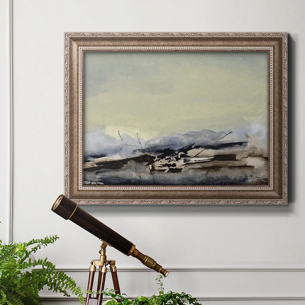 Shanthih II Premium Framed Canvas- Ready to Hang A Premium Framed Canvas created to last. Framed in distressed wood and available in an array of sizes and colors Featuring a beveled a solid wood stretcher bar, each piece comes ready to hand 3 SIZES AVAILABLE 16''X20'' - Overall Size 18'X27'' - Overall Size 24''x36'' - Overall Size Each piece is made to order. Each piece comes with hanging hardware. Made in the USA Ready to Hang Giclee Paper Print Acrylic Glass Beveled Matt Board