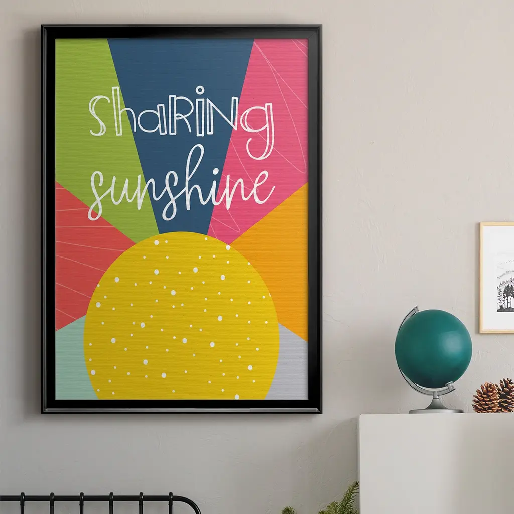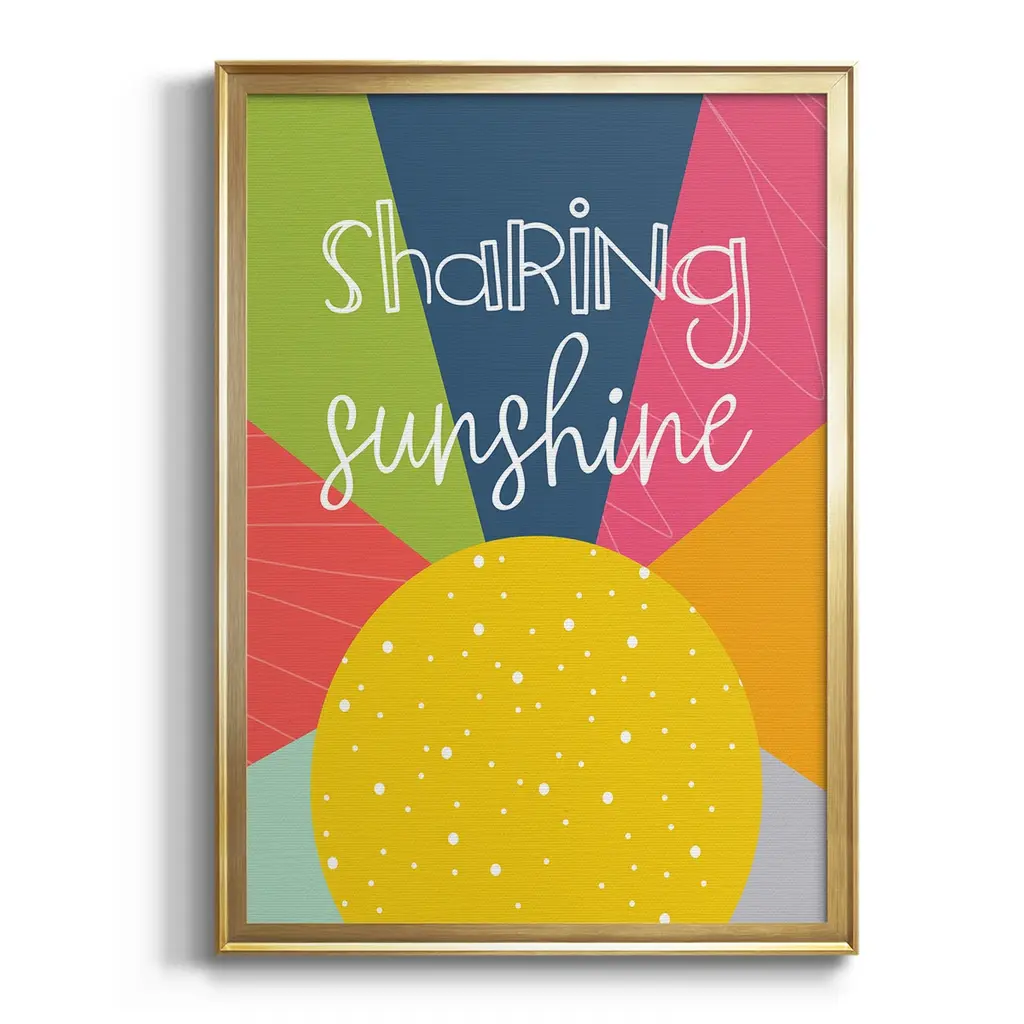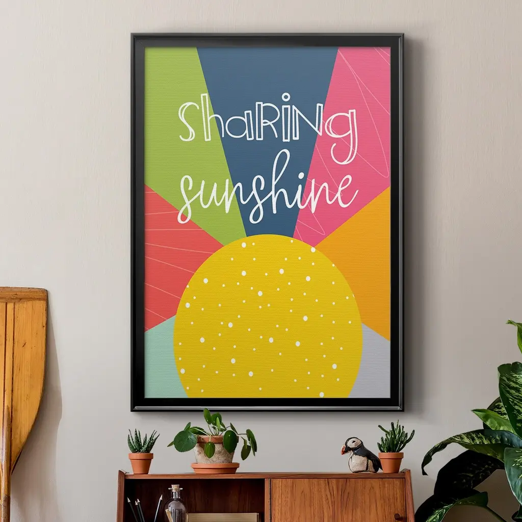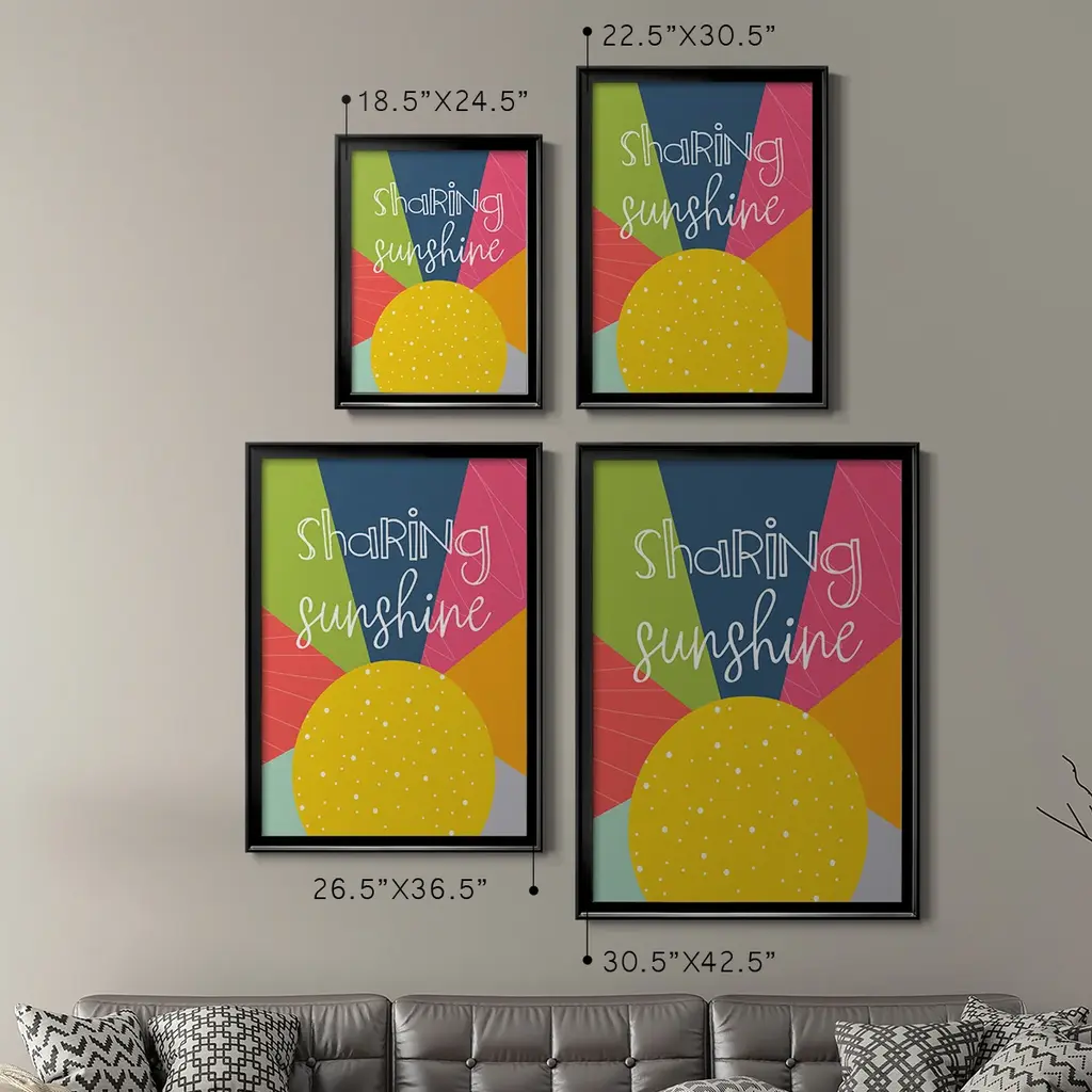 Sharing Sunshine Premium Framed Print - Ready to Hang A Premium Framed Print created to last. Framed in distressed wood and available in an array of sizes and colors Featuring a beveled a solid wood stretcher bar, each piece comes ready to hand 4 SIZES AVAILABLE 30.5''X42.5'' - Overall Size 26.5'X36.5'' - Overall Size 22.5''x30.5'' - Overall Size 18.5''x24.5'' - Overall Size Each piece is made to order. Each piece comes with hanging hardware. Made in the USA Ready to Hang